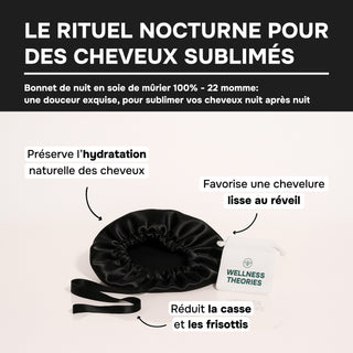 Bonnet de Nuit en Soie de Mûrier 22 Mommes Noir – Luxe & Soin Beauté – Protège les Cheveux, Préserve l’Hydratation et Évite les Frisottis