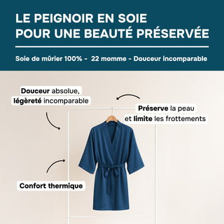 Peignoir en Soie de Mûrier 22 MM Bleu – Élégance & Douceur Incomparables