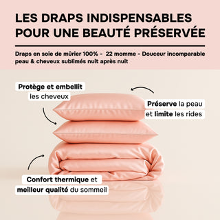 Set de Lit Complet Luxe Rose – Housse de Couette, Drap Plat & 2 Taies – Soie de Mûrier 100% Naturelle 22 Mommes – Confort Royal - Peau & Cheveux Sublimés