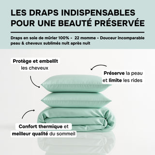 Set de Lit Complet Luxe Bleu Menthe – Housse de Couette, Drap Plat & 2 Taies – Soie de Mûrier 100% Naturelle 22 Mommes – Confort Royal - Peau & Cheveux Sublimés