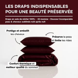 Set de Lit Complet Luxe Prune – Housse de Couette, Drap Plat & 2 Taies – Soie de Mûrier 100% Naturelle 22 Mommes – Confort Royal - Peau & Cheveux Sublimés