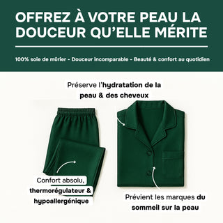 PYJAMA VERT 100 % SOIE DE MÛRIER 22 MM – CONFORT, BEAUTÉ & SOMMEIL RÉPARATEUR