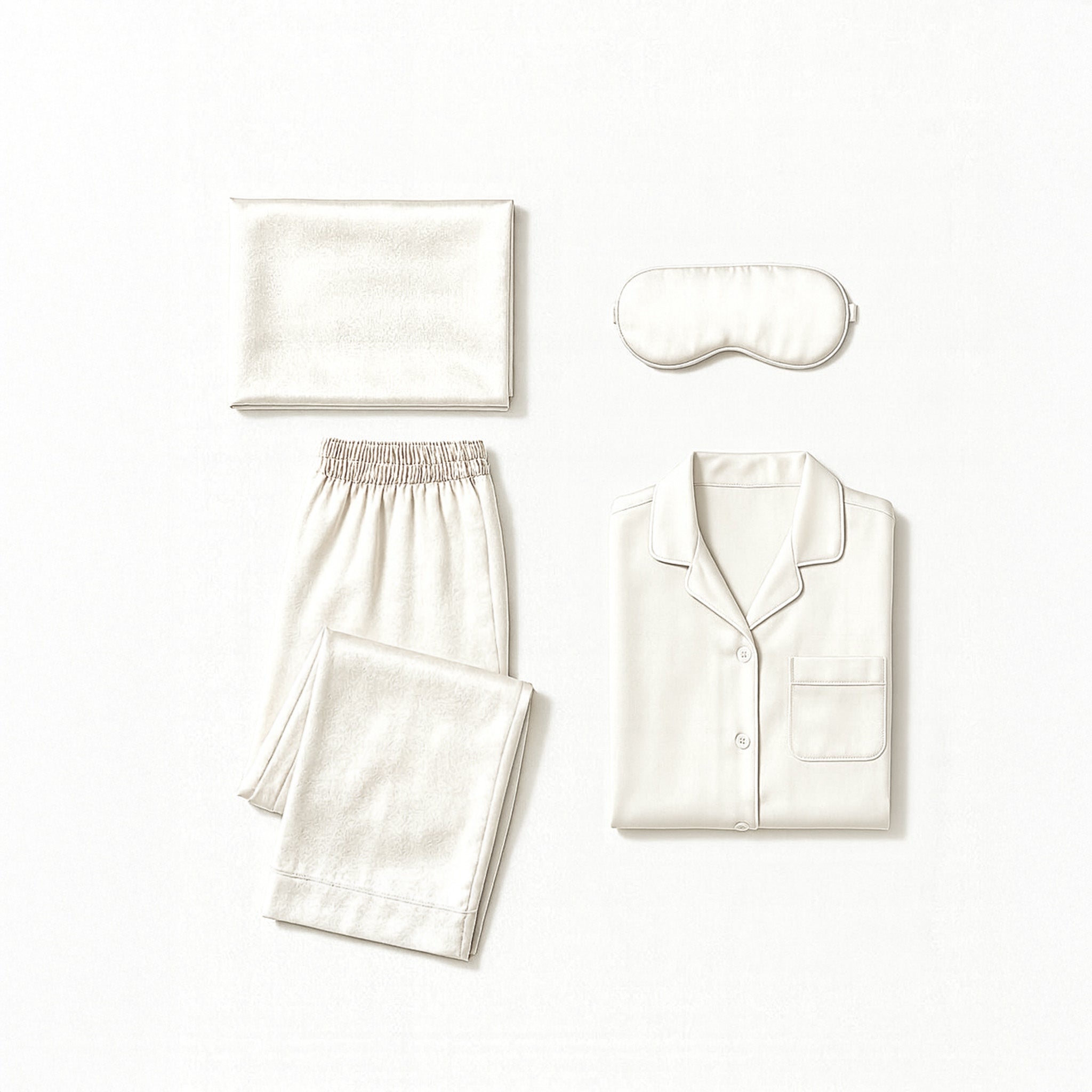 PACK RITUEL DE SOIE IVOIRE – Pyjama, Masque de Nuit & Taie en Soie – Confort, Beauté & Sommeil Réparateur