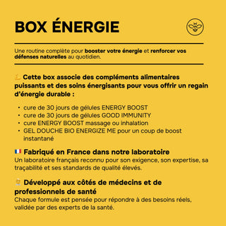 BOX Énergie – L’Alliance Énergie : Compléments + Aromathérapie + Gel Douche Vivifiant - Booster Pour le Corps et l'Esprit - Made In France