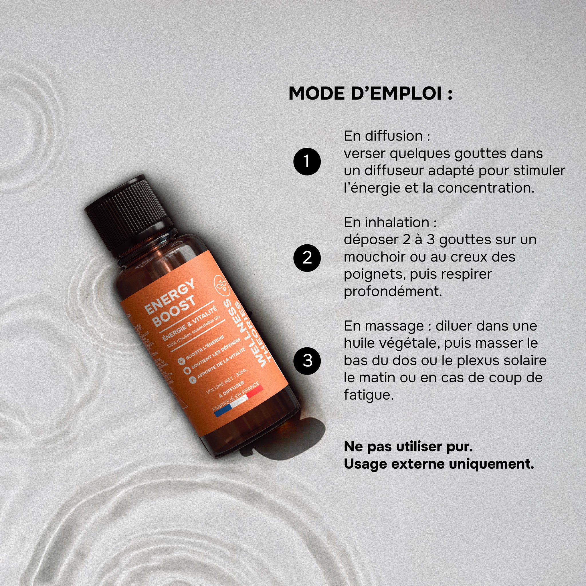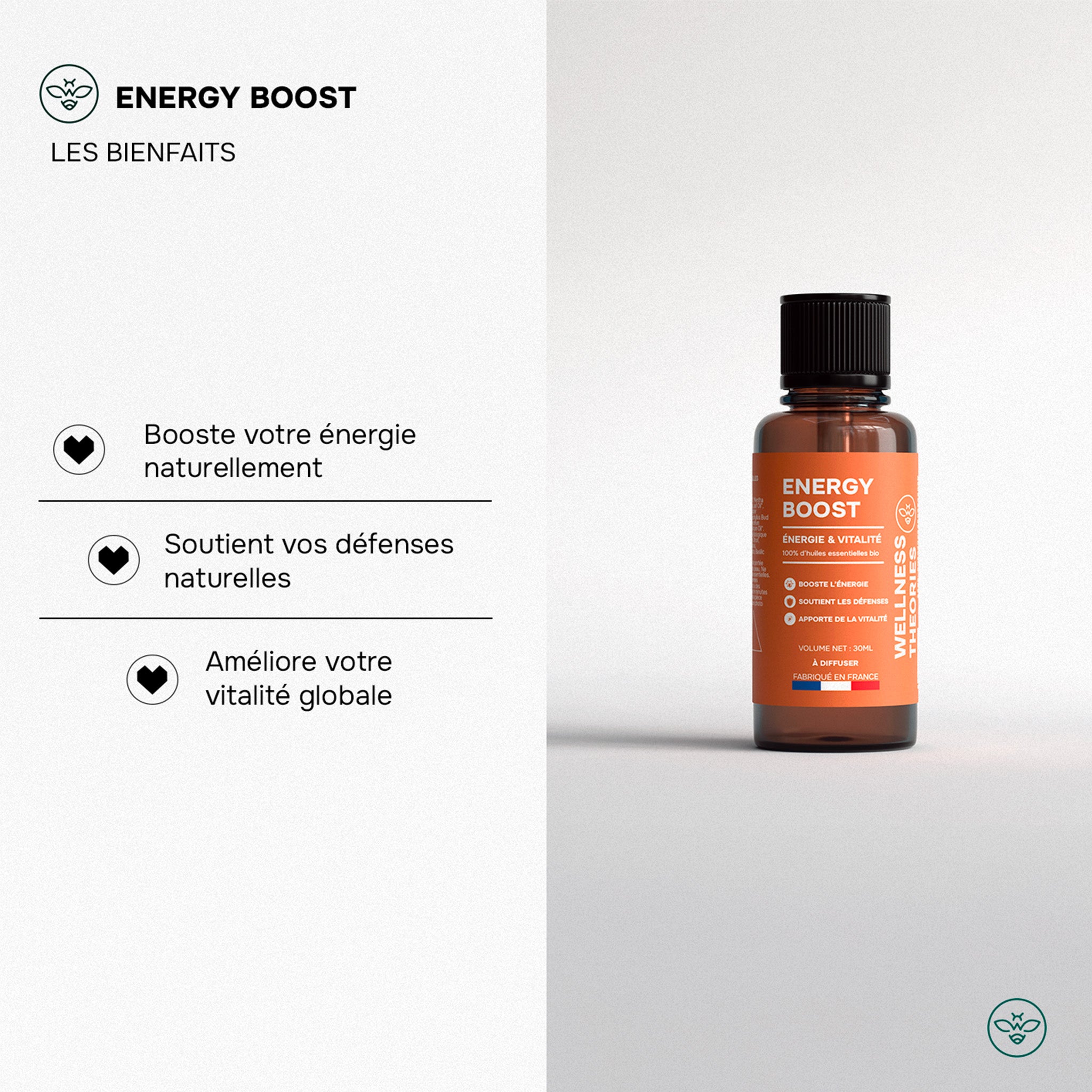 ENERGY BOOST - Synergie aus ätherischen Ölen Bio - Sofortige Vitalität, Klarer Geist & Wiedergefundene Spannkraft - - Diffusion, Inhalation oder Massage - Flasche 30 ml