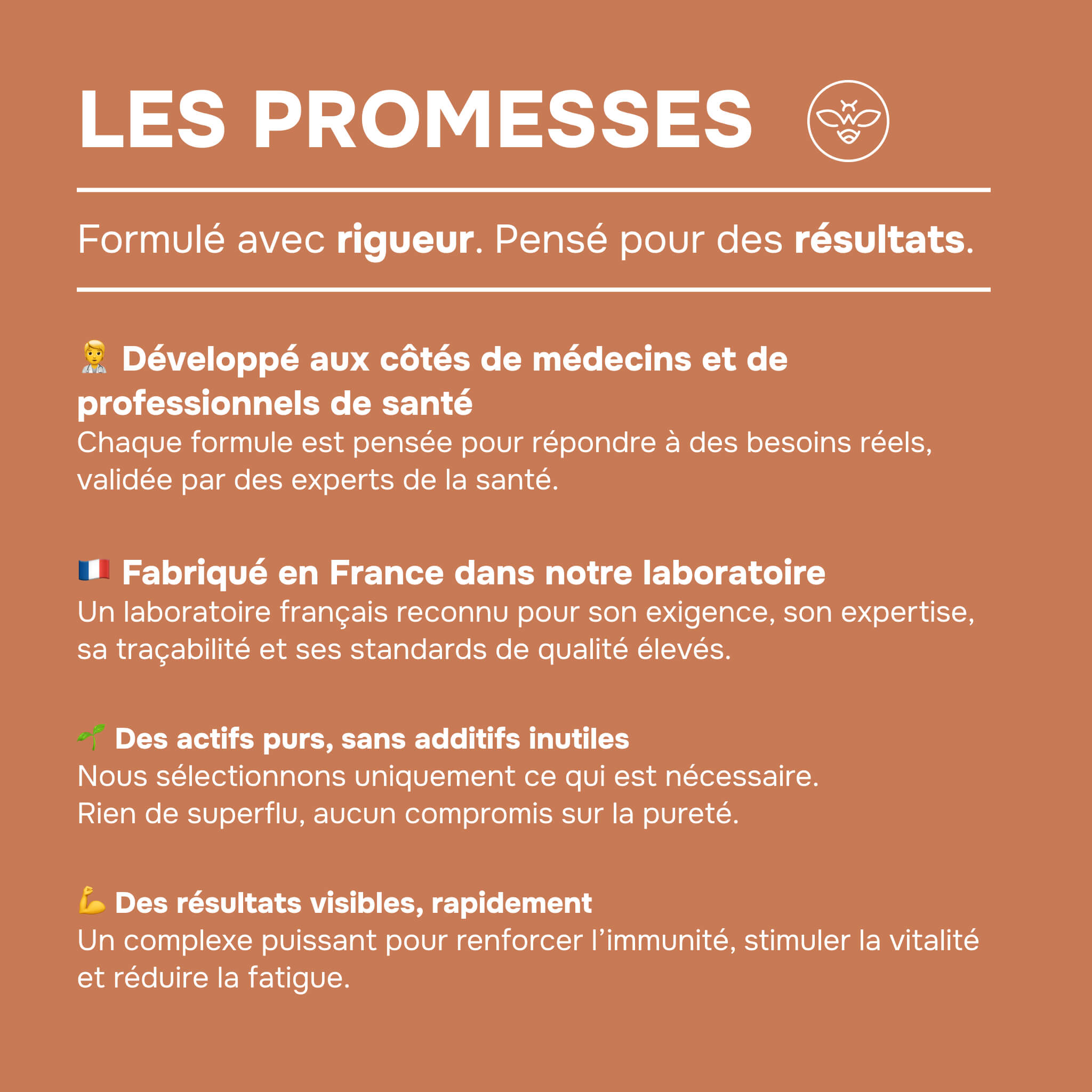 Diese Formel kombiniert gefriergetrocknetes Gelée Royale, das von Natur aus reich an essentiellen Nährstoffen ist, mit Trockenextrakten aus Ginseng, um die Energie und die Abwehrkräfte zu stimulieren, und Echinacea, der Leitpflanze für die Immunität. Zink trägt zu einer guten Funktion des Immunsystems bei und schützt die Zellen vor oxidativem Stress. Die GOOD IMMUNITY-Kapseln werden in vegetarischen Kapseln angeboten und bieten eine komplette 30-Tage-Kur zur sanften und wirksamen Stärkung der Abwehrkräfte.