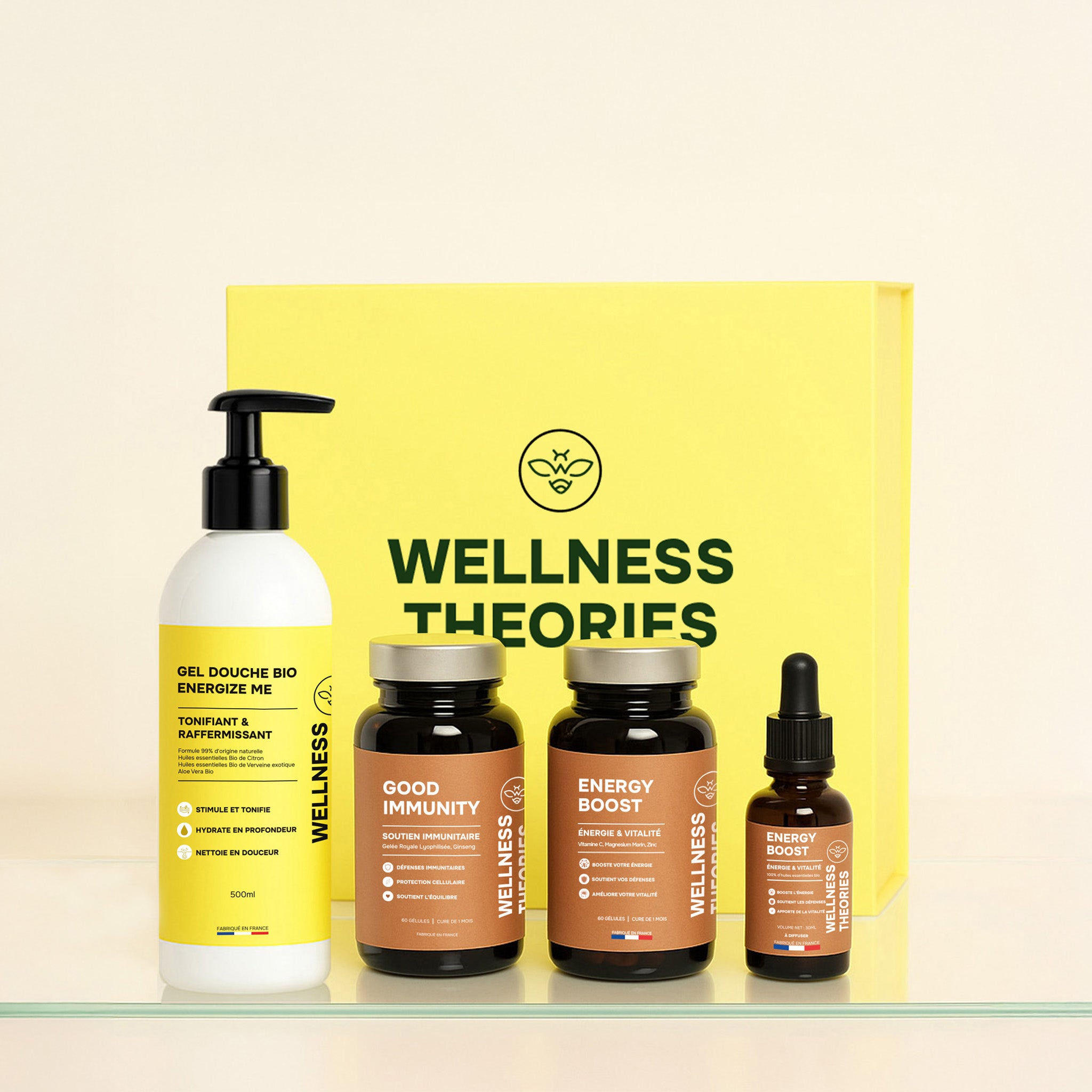 Box Energie Ritual - Die Energie-Allianz: Nahrungsergänzungsmittel + Aromatherapie + Belebendes Duschgel - Booster Für Körper und Geist - Made In France