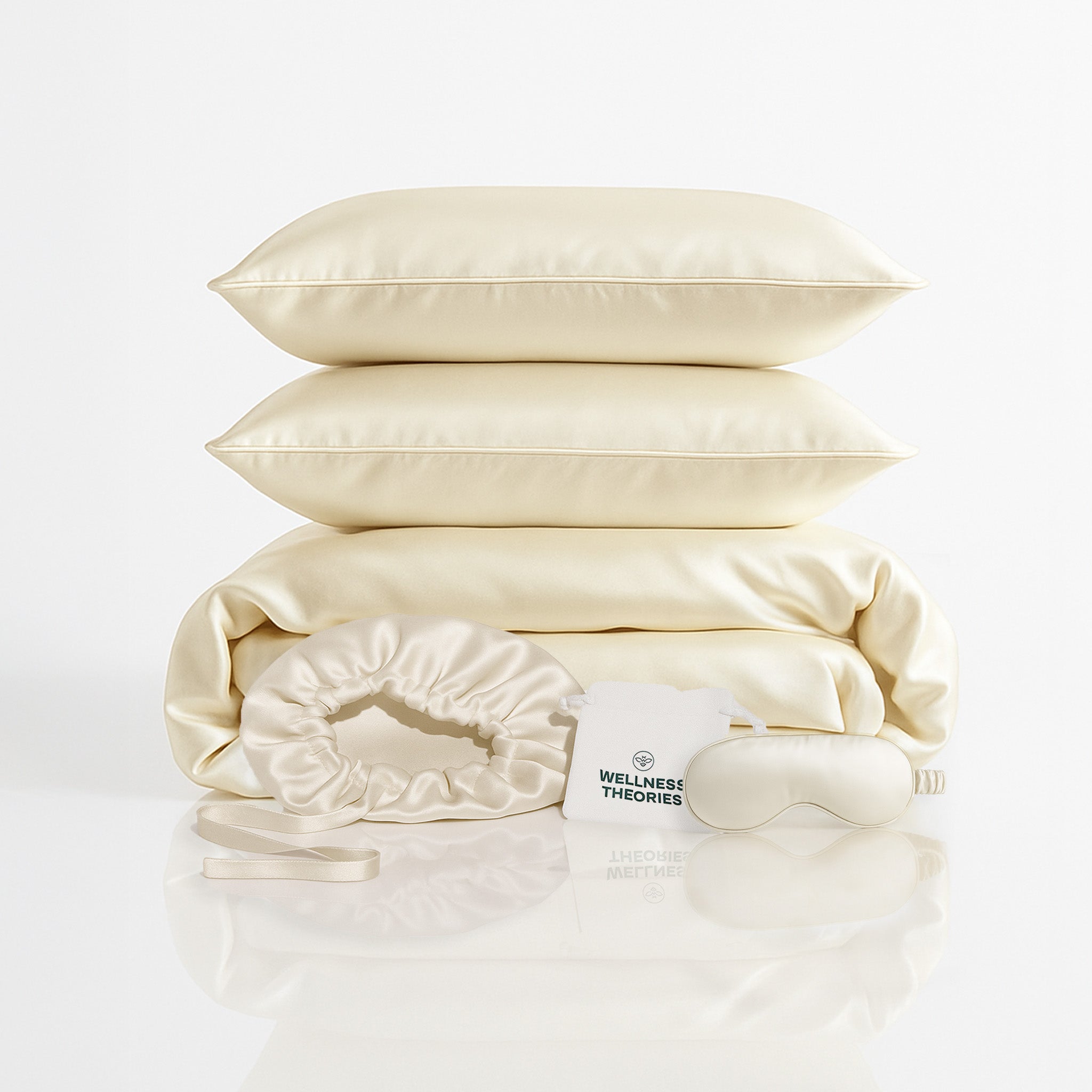 Zusammen bilden diese drei Seidenessentials ein komplettes nächtliches Ritual, das Luxus, Komfort und Pflege vereint, um die Haut zu verfeinern, die Schönheit des Haars zu bewahren und einen unvergleichlich weichen Schlaf zu schenken.