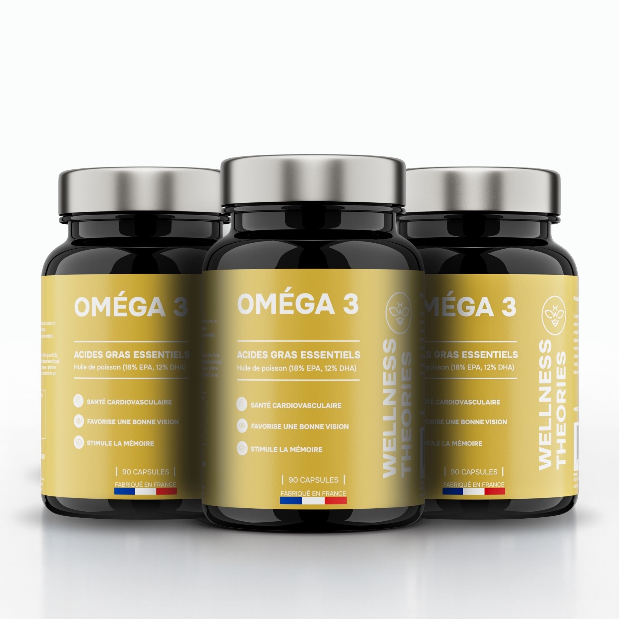Pack x3 Omega 3 - Konzentriertes Fischöl - Herz, Sehkraft, Gehirn - 3-Monats-Kur - Made in France