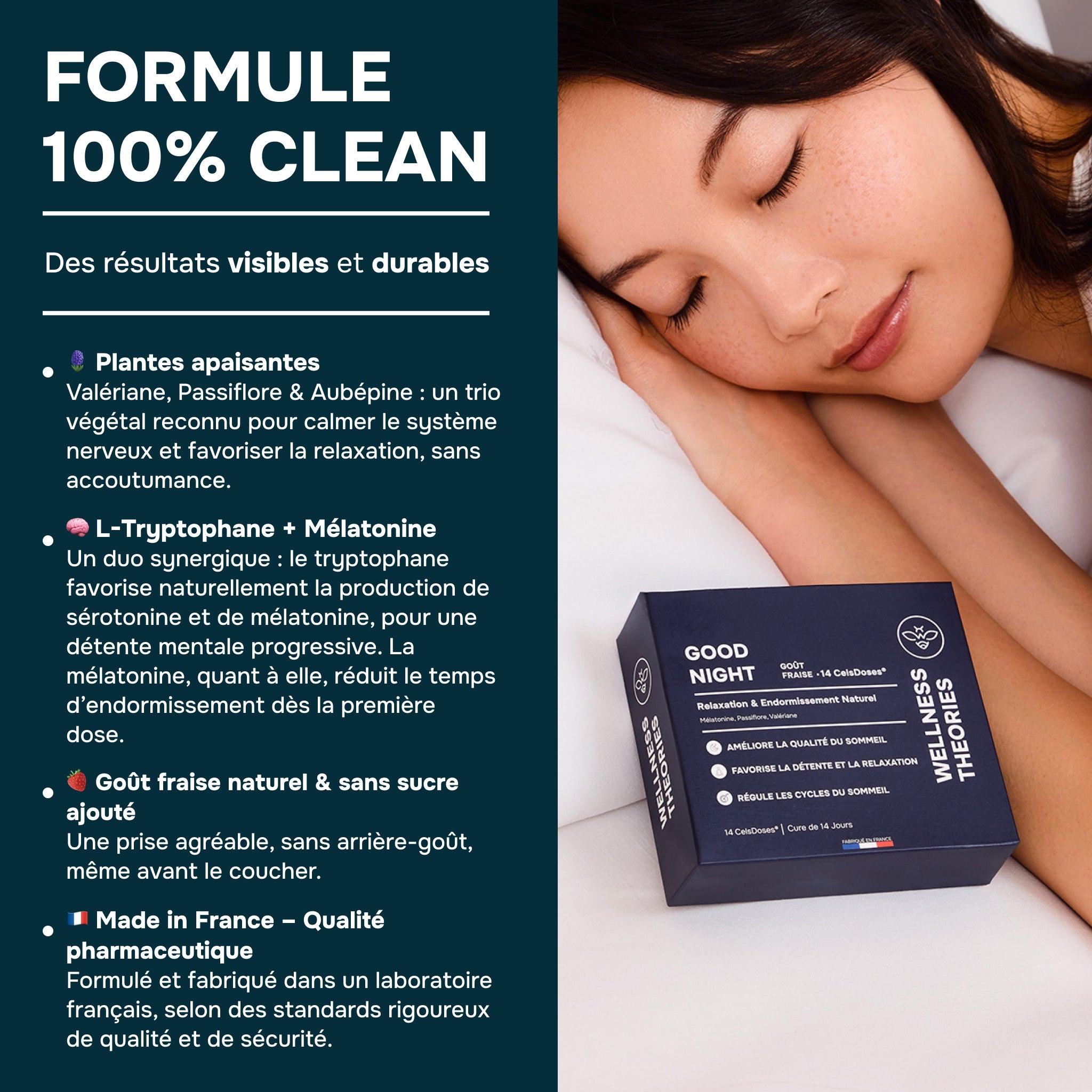 GOOD NIGHT – Schlaf-Shot Erdbeer – Beruhigende Pflanzen – Erholsame Nacht – Einzeldosen – Made in France