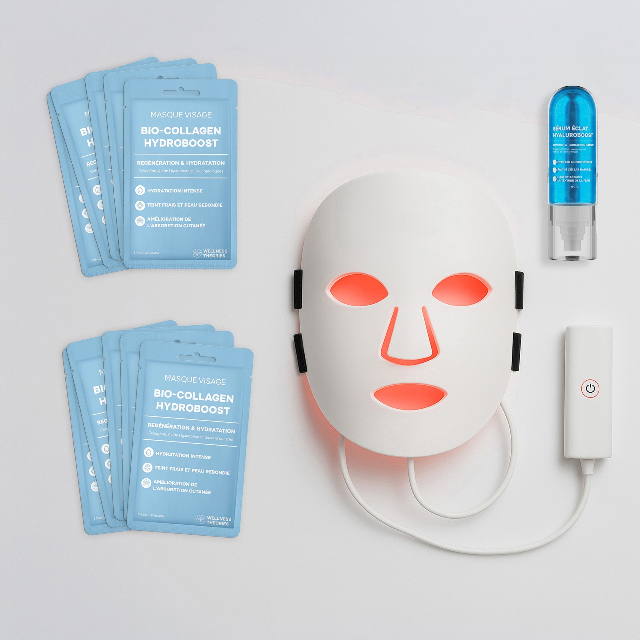 LUMINIS RITUAL - LED-Maske Premium + 10 Bio-Collagen-Masken + Hyaluroboost-Serum