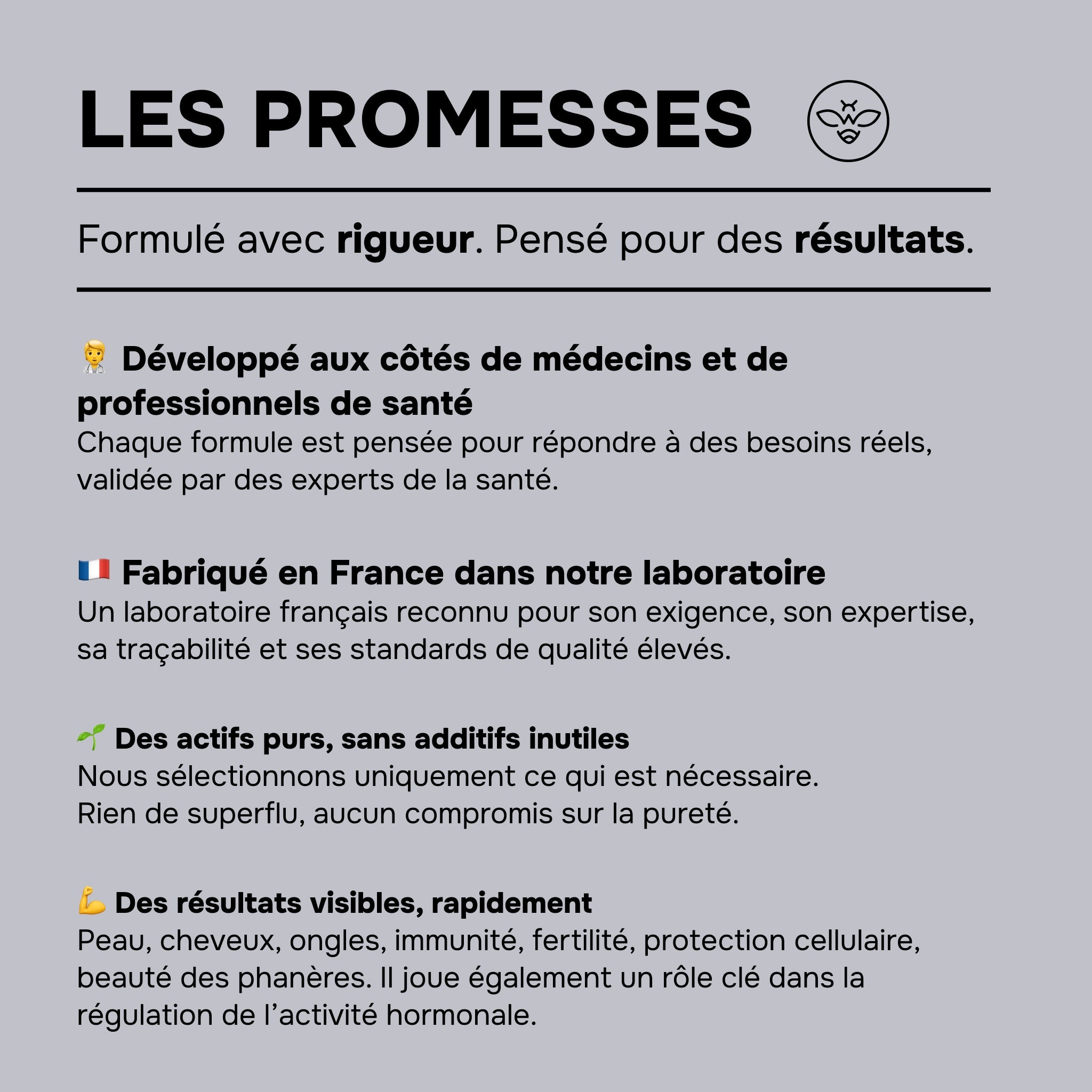 Jede pflanzliche Zellulosekapsel enthält 50 µg Selen aus angereicherter Hefe, d. h. 90 % der Referenzmenge. Selen ist ein essentielles Spurenelement, das an zahlreichen lebenswichtigen Funktionen beteiligt ist: Immunität, Fruchtbarkeit, Zellschutz und Schönheit der Haut. Es spielt auch eine Schlüsselrolle bei der Regulierung der Hormontätigkeit. Eine einfache und gezielte Einnahme, um das Gleichgewicht des Organismus auf natürliche Weise zu stärken.