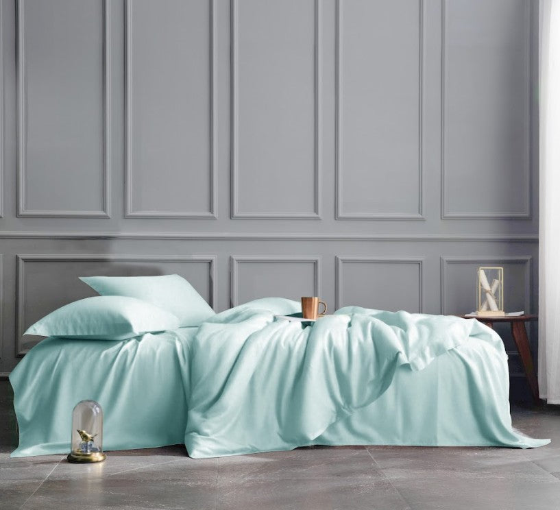 Luxus-Komplett-Bettset Mintblau – Bettbezug, Oberlaken & Spannbettlaken + 2 Kissenbezüge – 100% natürlich, 22 Momme – Königlicher Komfort – Haut & Haare veredelt