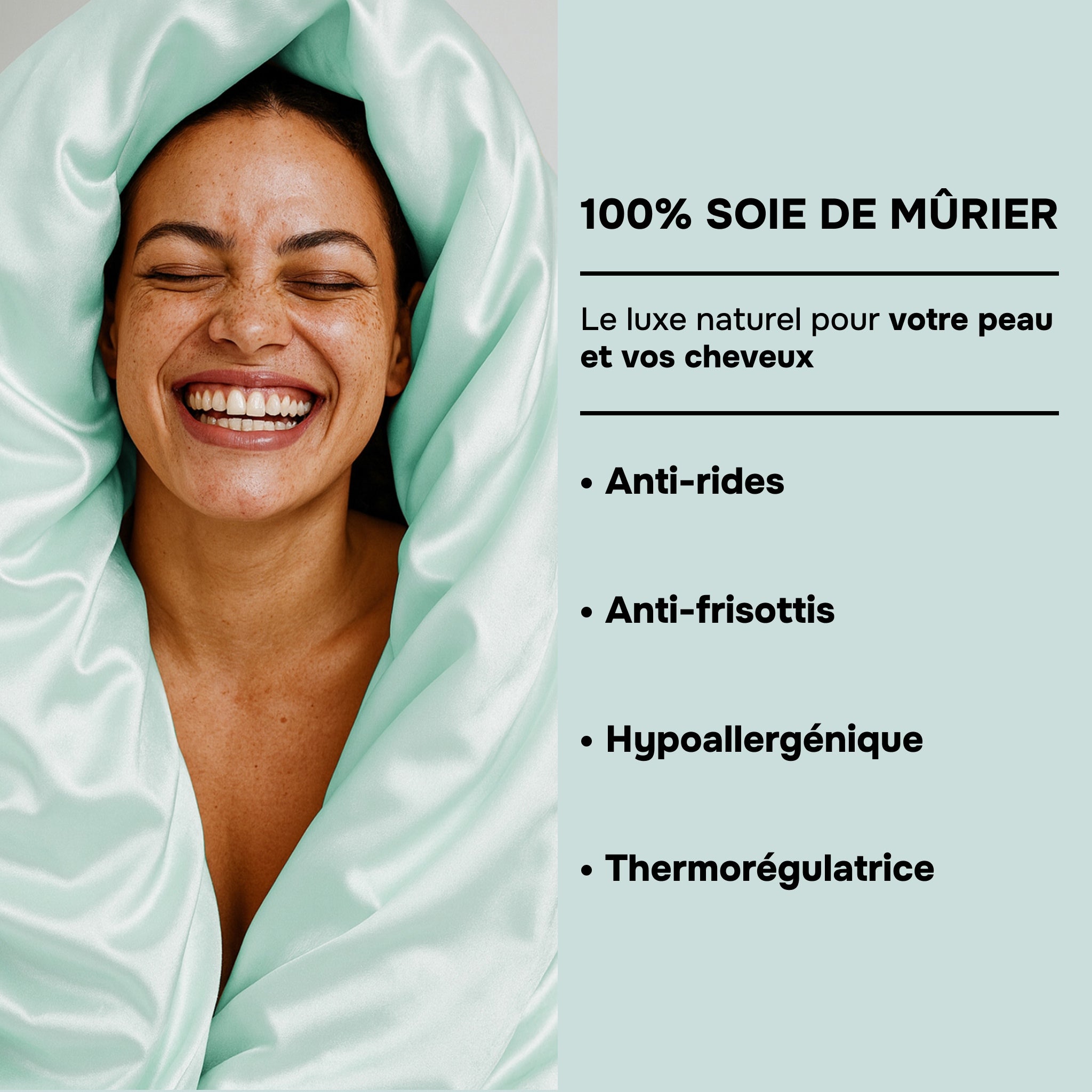 Ideal für alle Haut- und Haartypen: Die Seidenbettwäsche trägt dazu bei, die Feuchtigkeit zu bewahren, Reibung zu reduzieren (die für Frizz, Schlafabdrücke und Haarbruch verantwortlich ist) und gleichzeitig das Hautgleichgewicht zu respektieren.