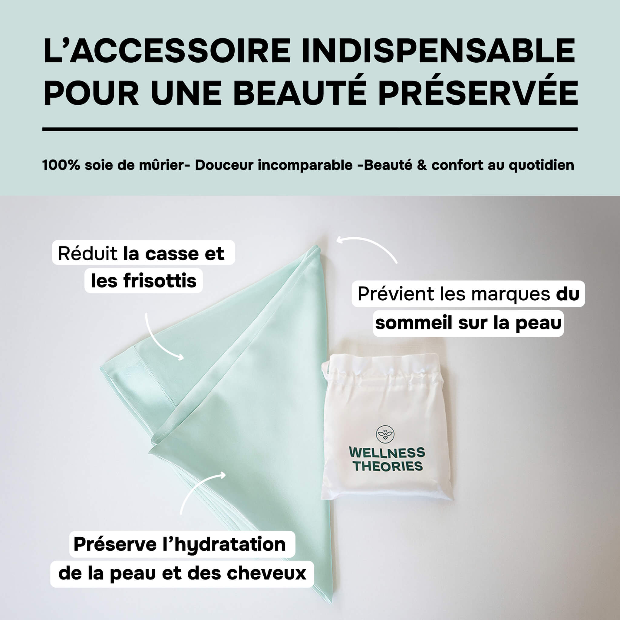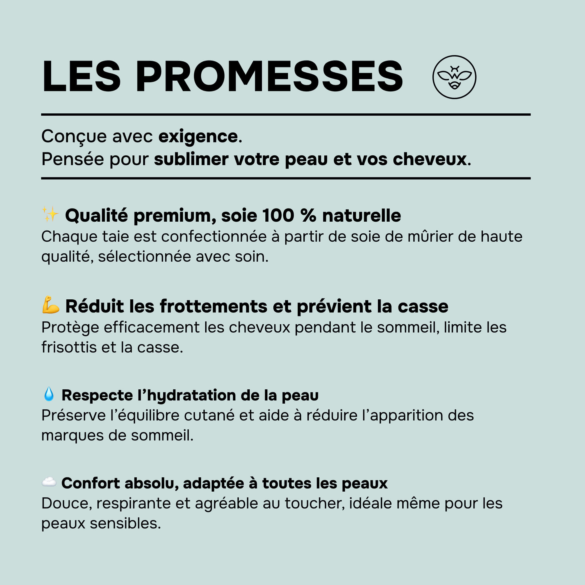 Dieser luxuriöse Bezug besteht zu 100 % aus Maulbeerseide, ist weich, hypoallergen und von Natur aus temperaturregulierend. Im Gegensatz zu Baumwolle nimmt er abends aufgetragene Pflegeprodukte nicht auf und respektiert das Hautgleichgewicht. Er trägt dazu bei, die Haut glatt zu halten, die Bildung feiner Linien zu reduzieren und das Haar glänzend und gepflegt aussehen zu lassen. Ein unverzichtbares Beauty-Essential für die nächtliche Routine.