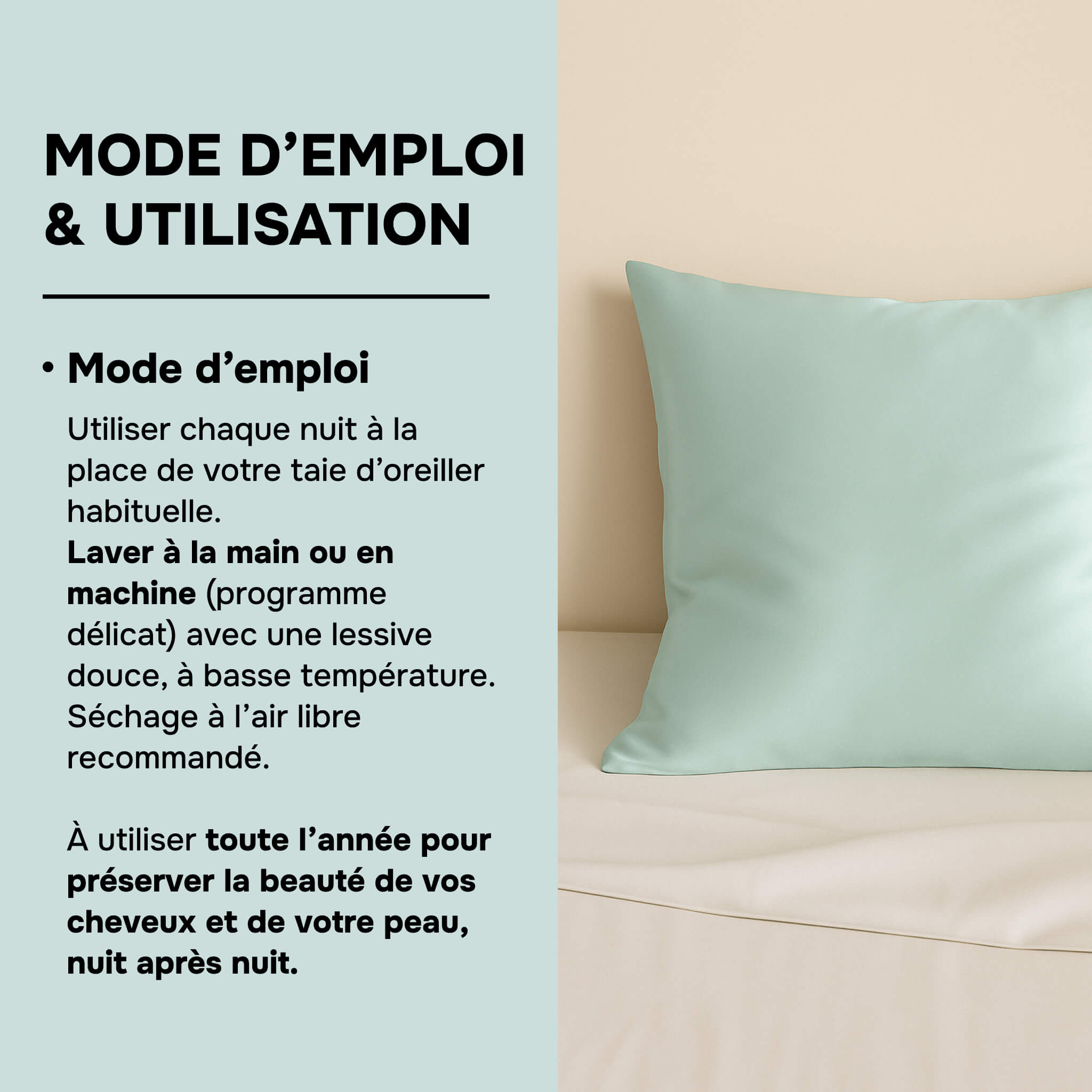 Jede Nacht wie einen herkömmlichen Kissenbezug verwenden. Um die Vorteile für Haut und Haare voll auszuschöpfen, ist eine regelmäßige und schonende Pflege empfehlenswert. Ideal für empfindliche Haut, kann er das ganze Jahr über verwendet werden und sorgt für optimalen Komfort und ein natürlich frisches Gefühl.