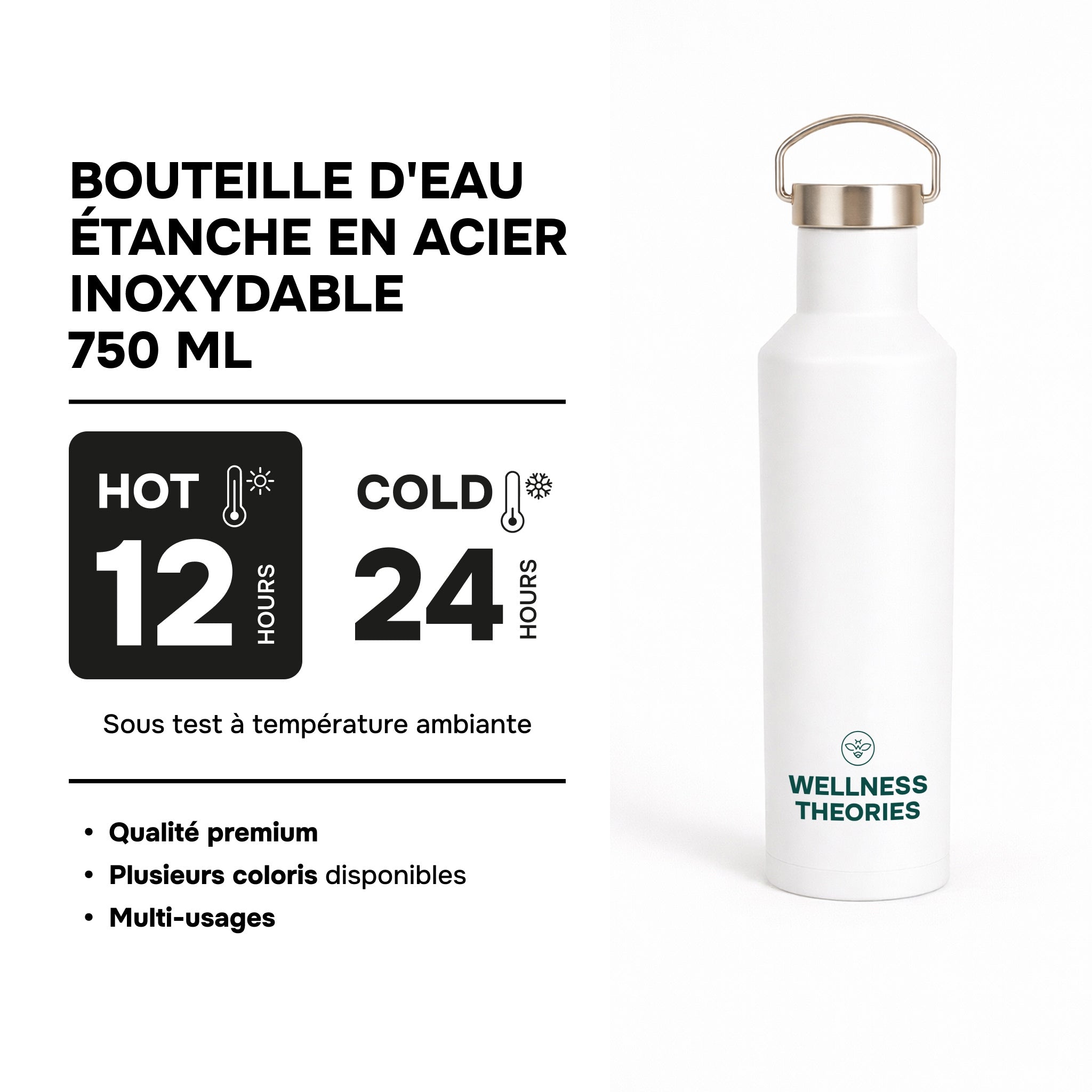 Alliez hydration, elegance and well-being with the Wellness Theories 750 ml insulated bottle, perfect for keeping you company all day long.
