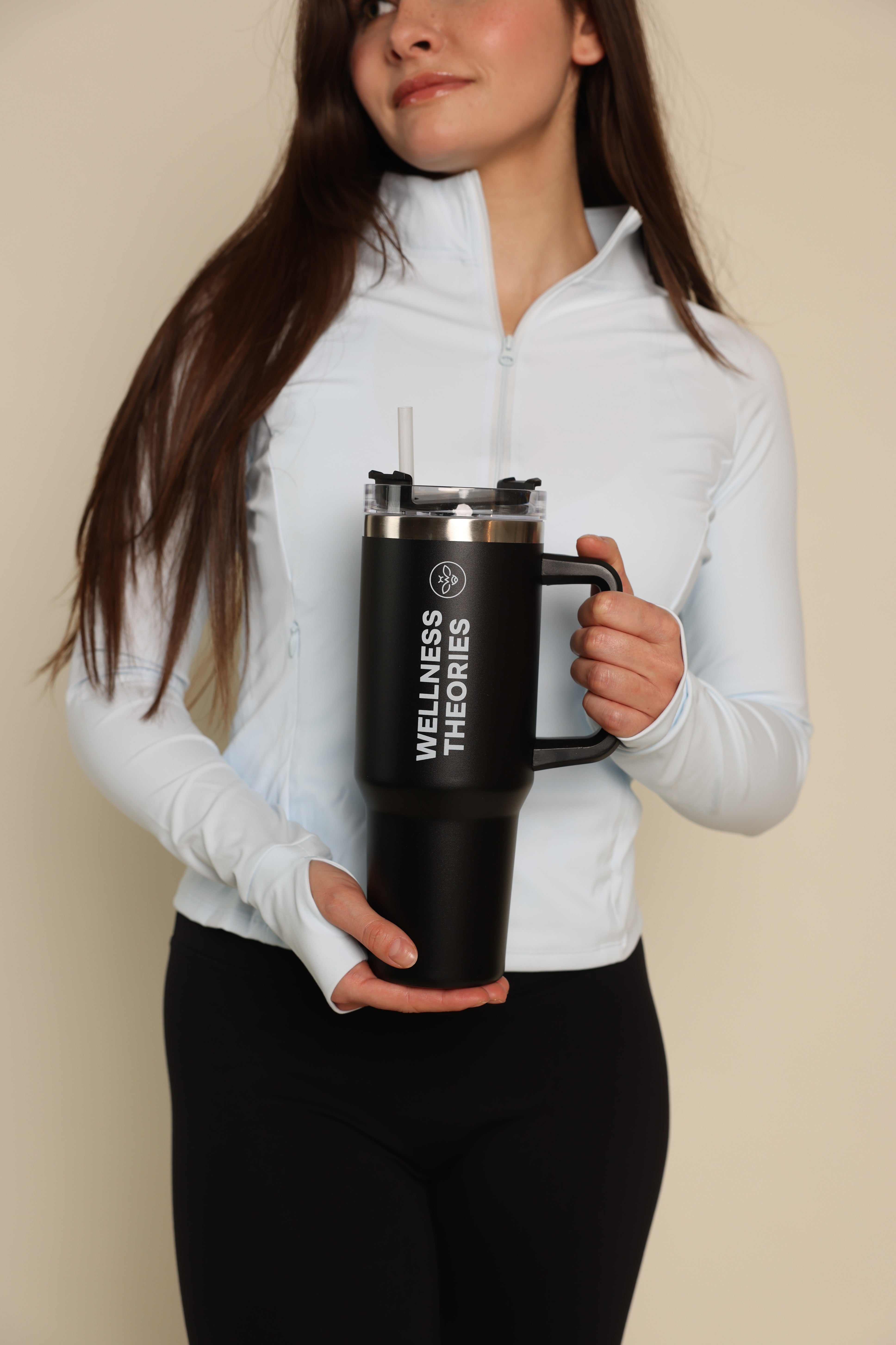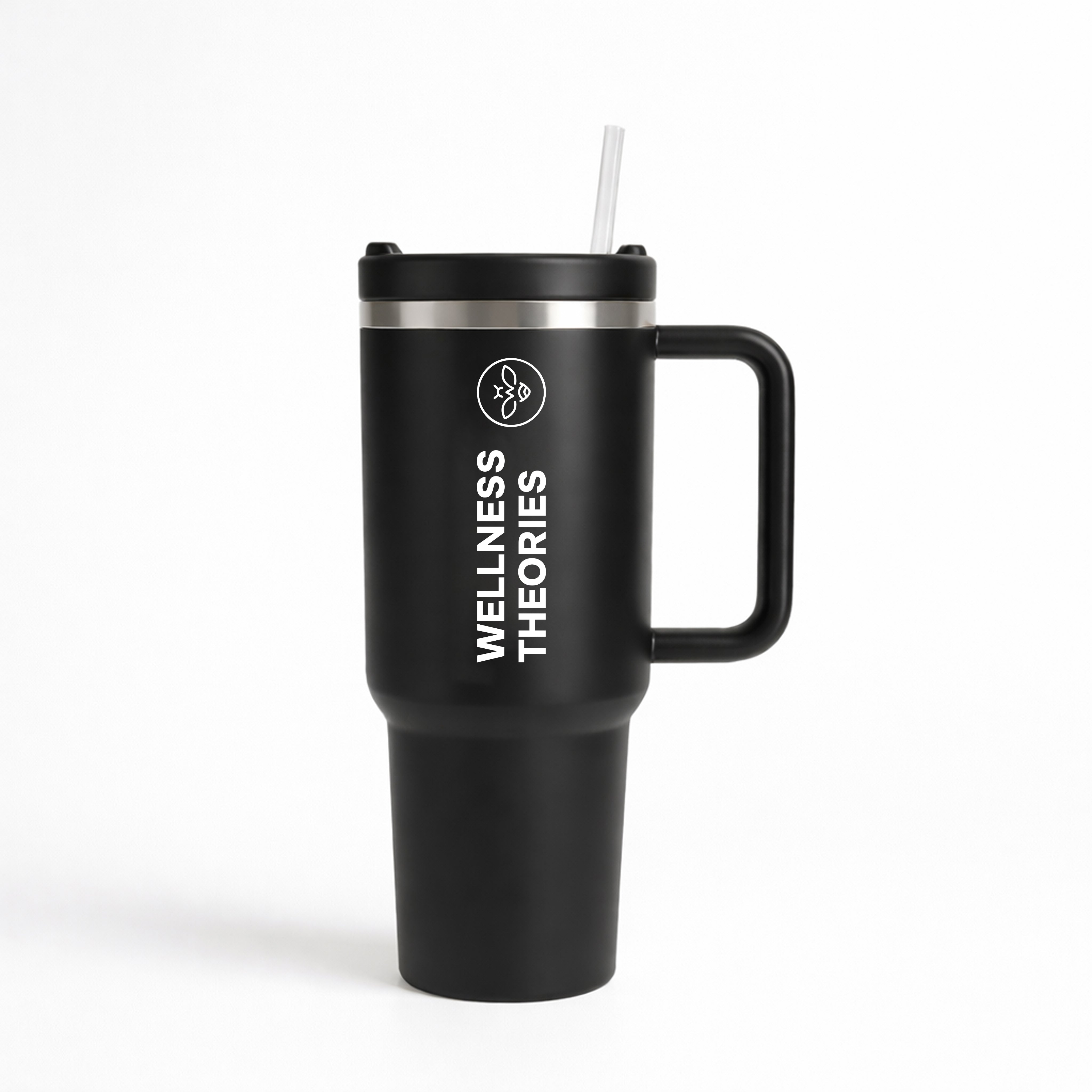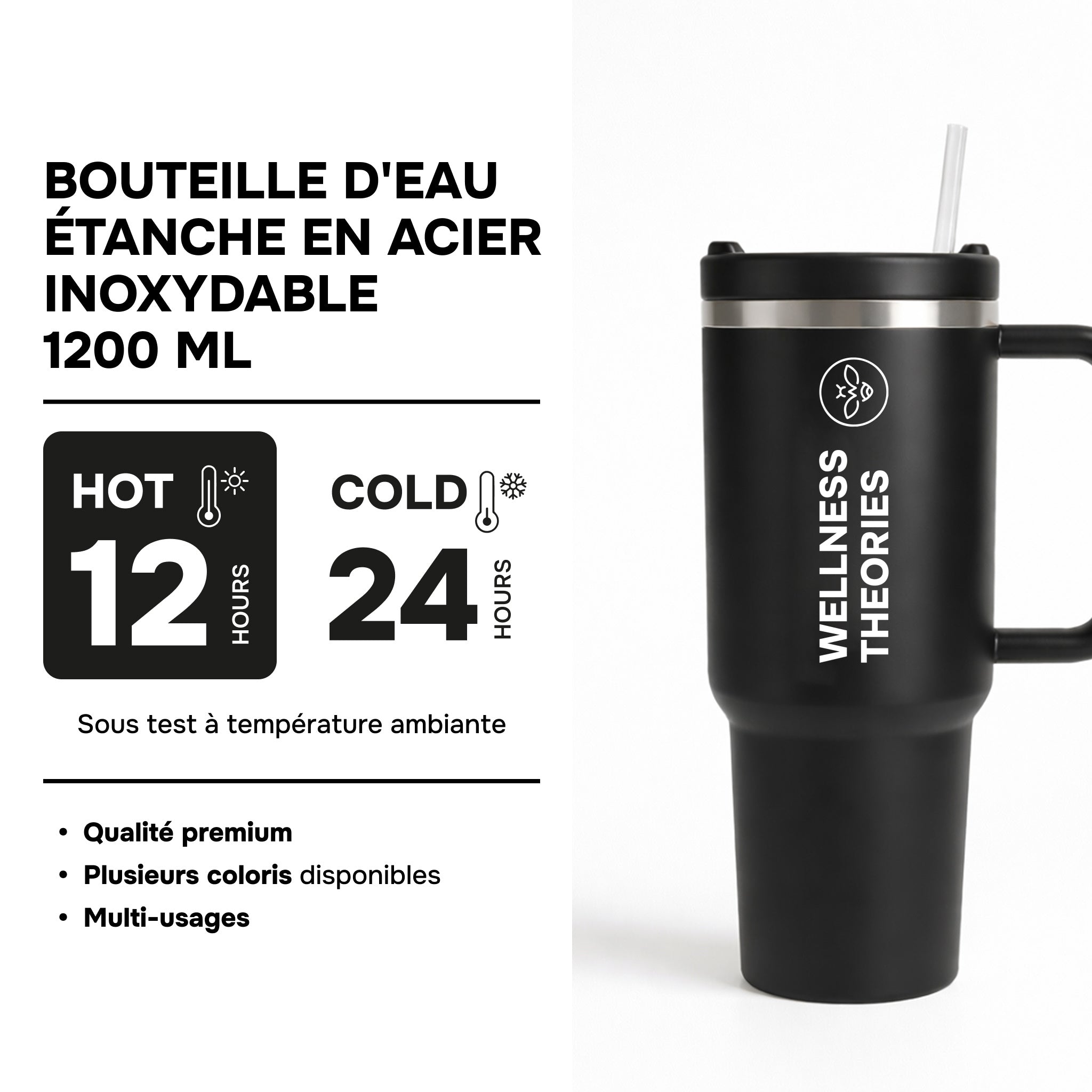 WELLNESS THEORIES - Insulated Mug with Straw 1.2L – Stainless Steel - Black