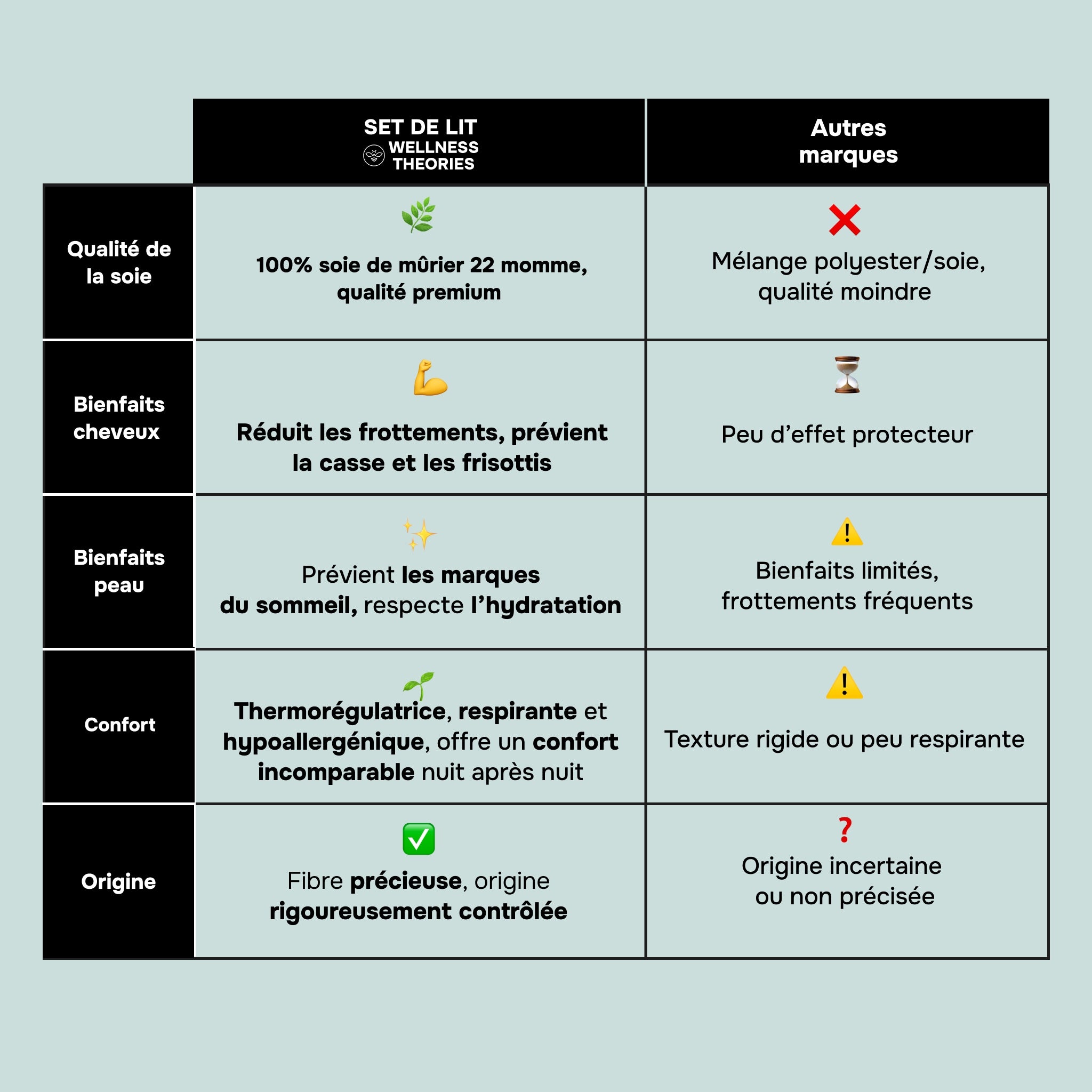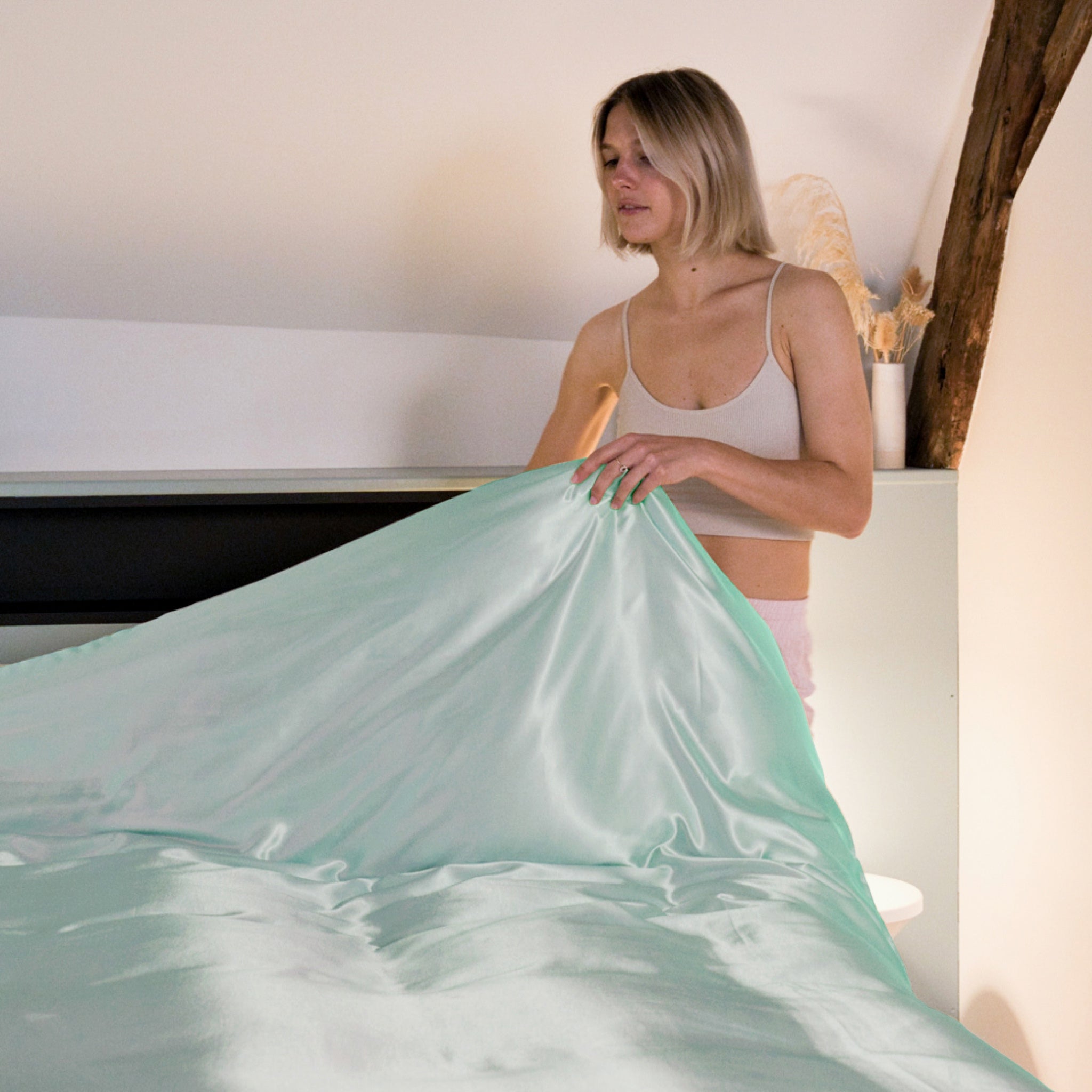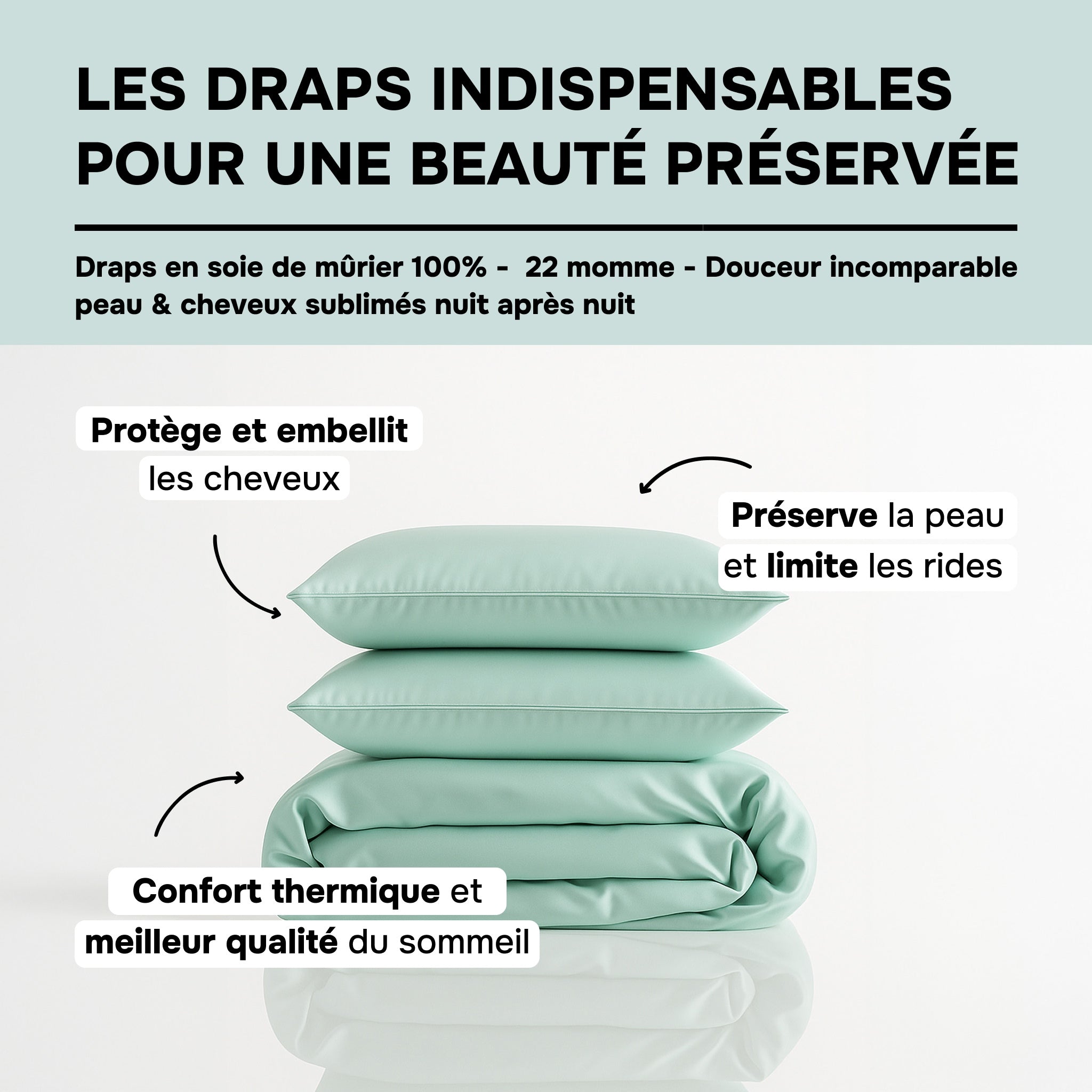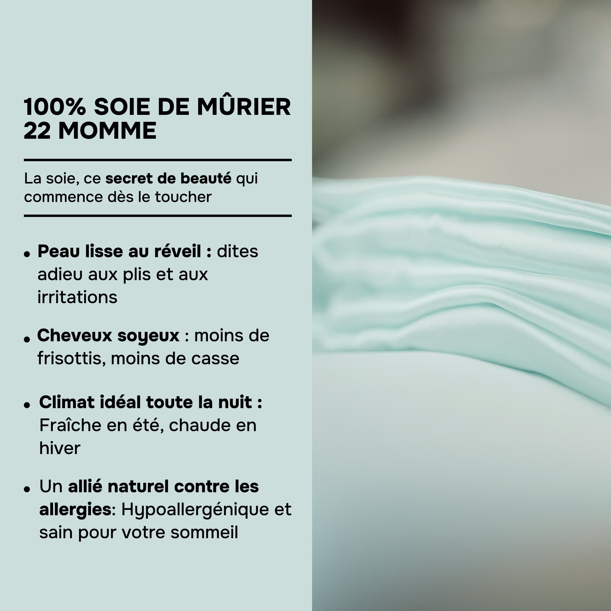 Who is it for? People looking for exceptional sleep and royal comfort, while taking care of their skin and hair. This complete bedding set made from 100% natural 22 momme mulberry silk is ideal for those who want to limit friction, preserve skin and hair moisture, and avoid sleep marks. Perfect for sensitive skin and fragile hair, it transforms every night into a luxurious experience, with a silky, thermoregulating, and hypoallergenic feel.