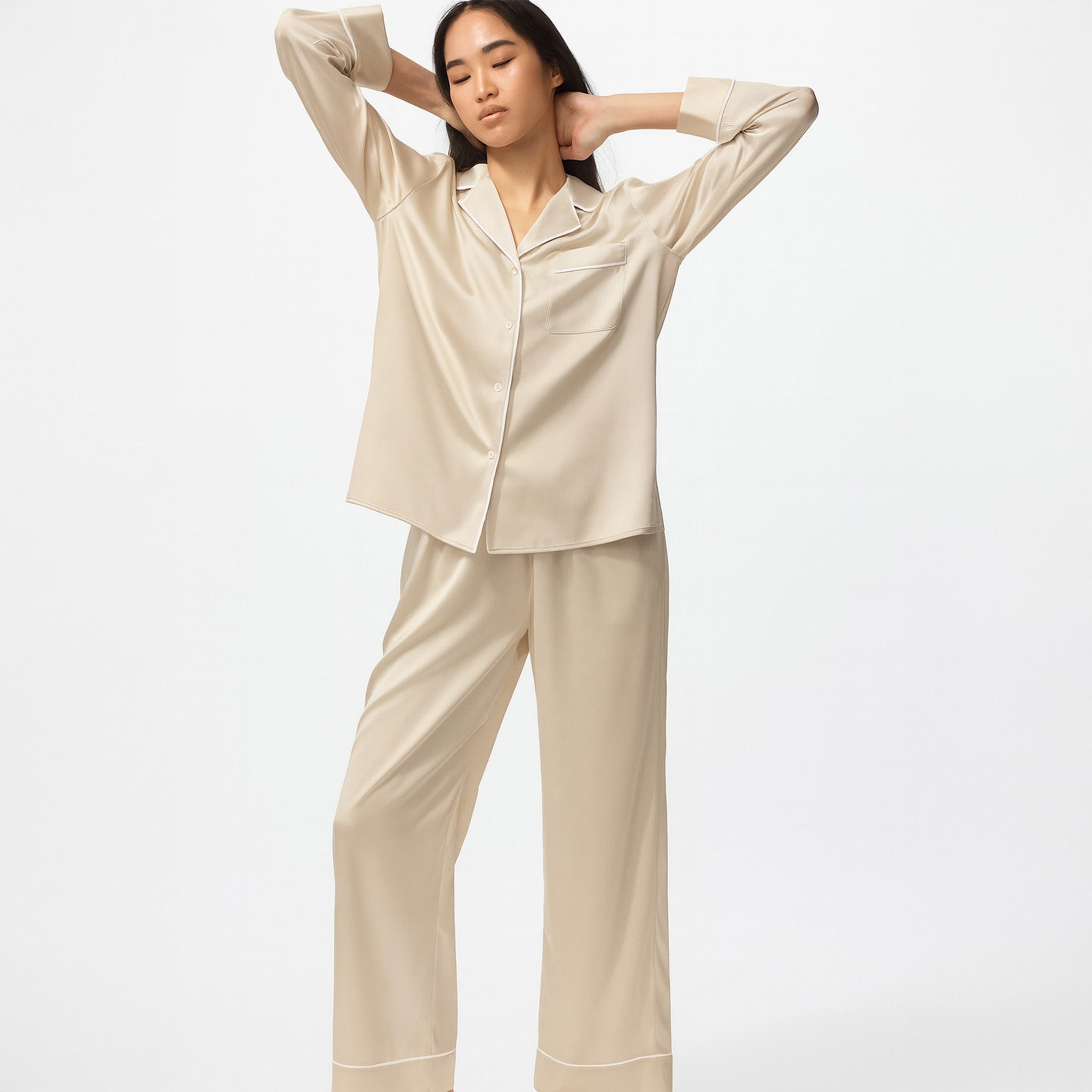 Thanks to the natural softness of mulberry silk and the comfort of pajamas, this set is for anyone looking for a peaceful night's sleep, a bright awakening, and silky, manageable hair.