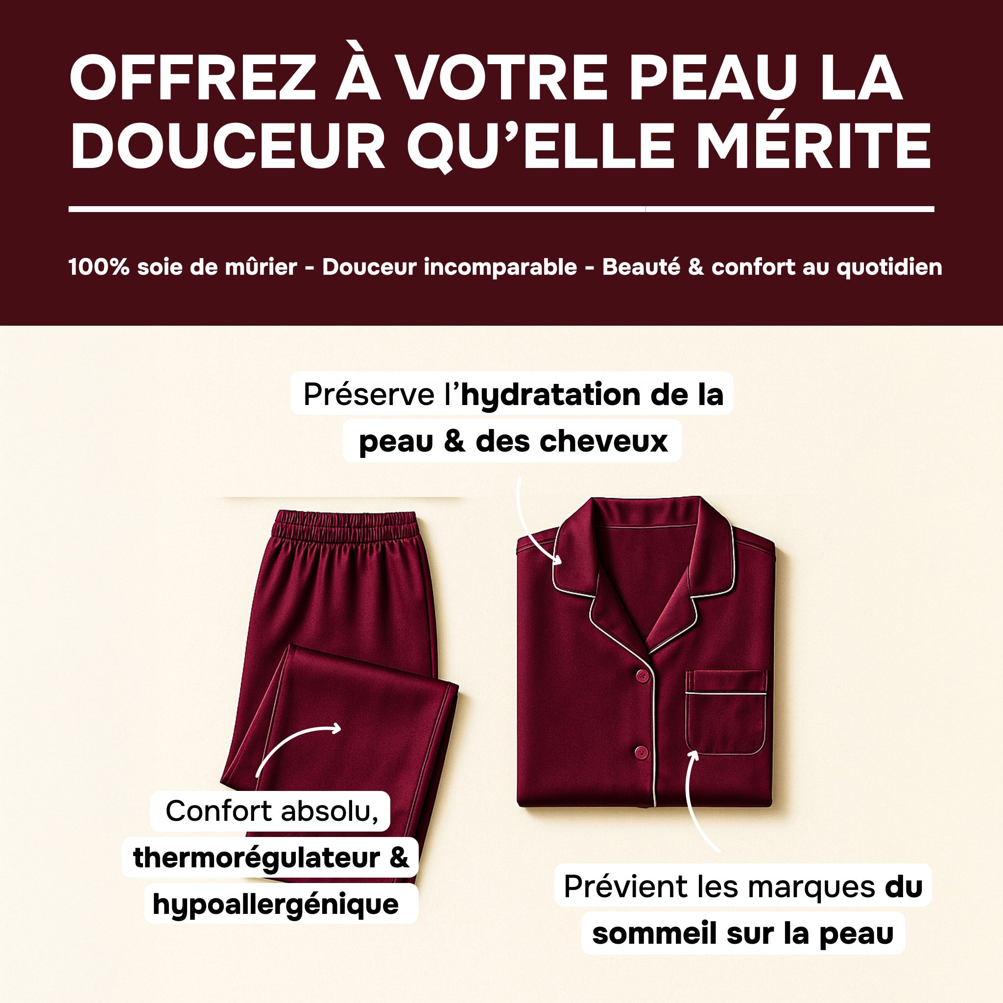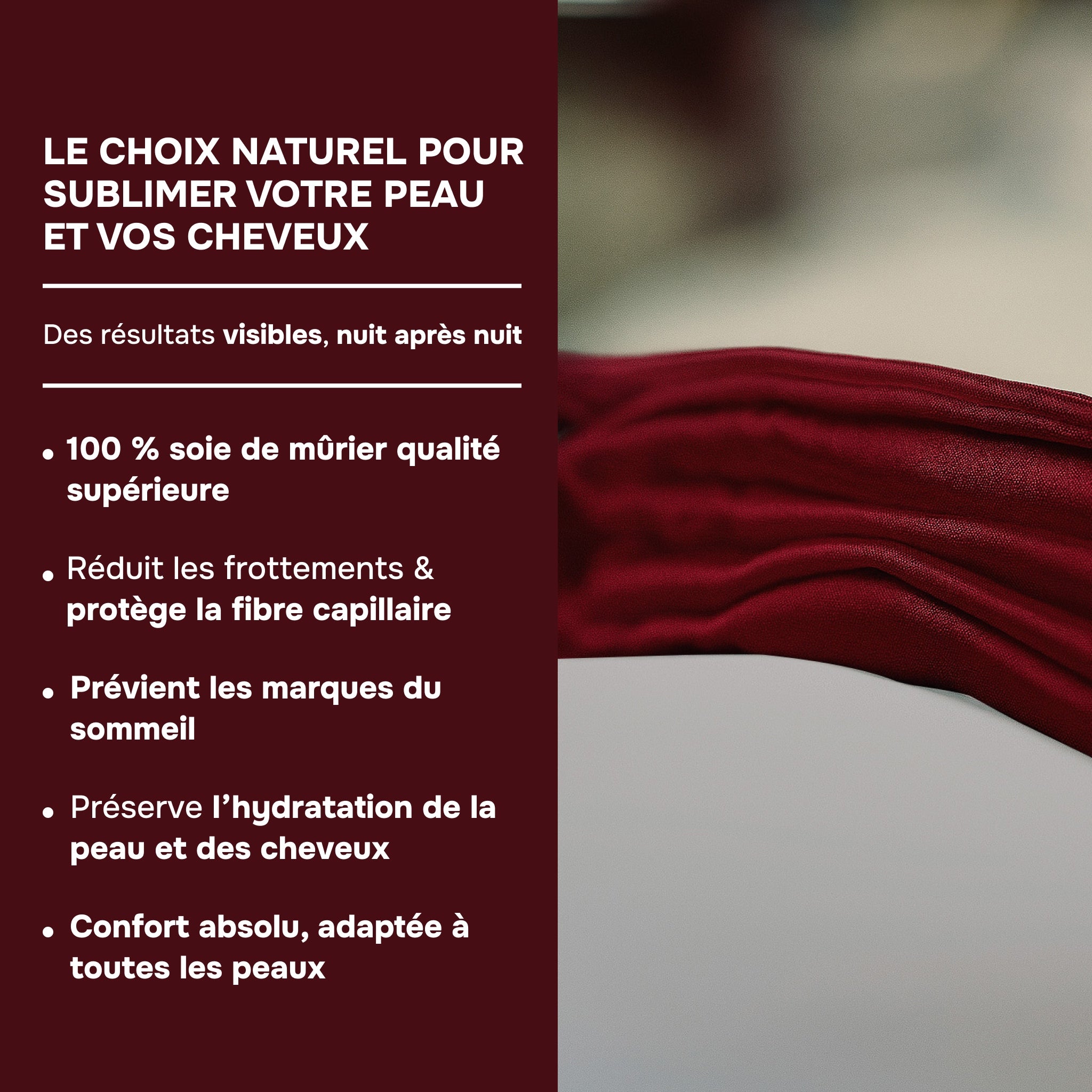 Elegance & care – 100% mulberry silk 22 MM for smooth skin and a radiant awakening.