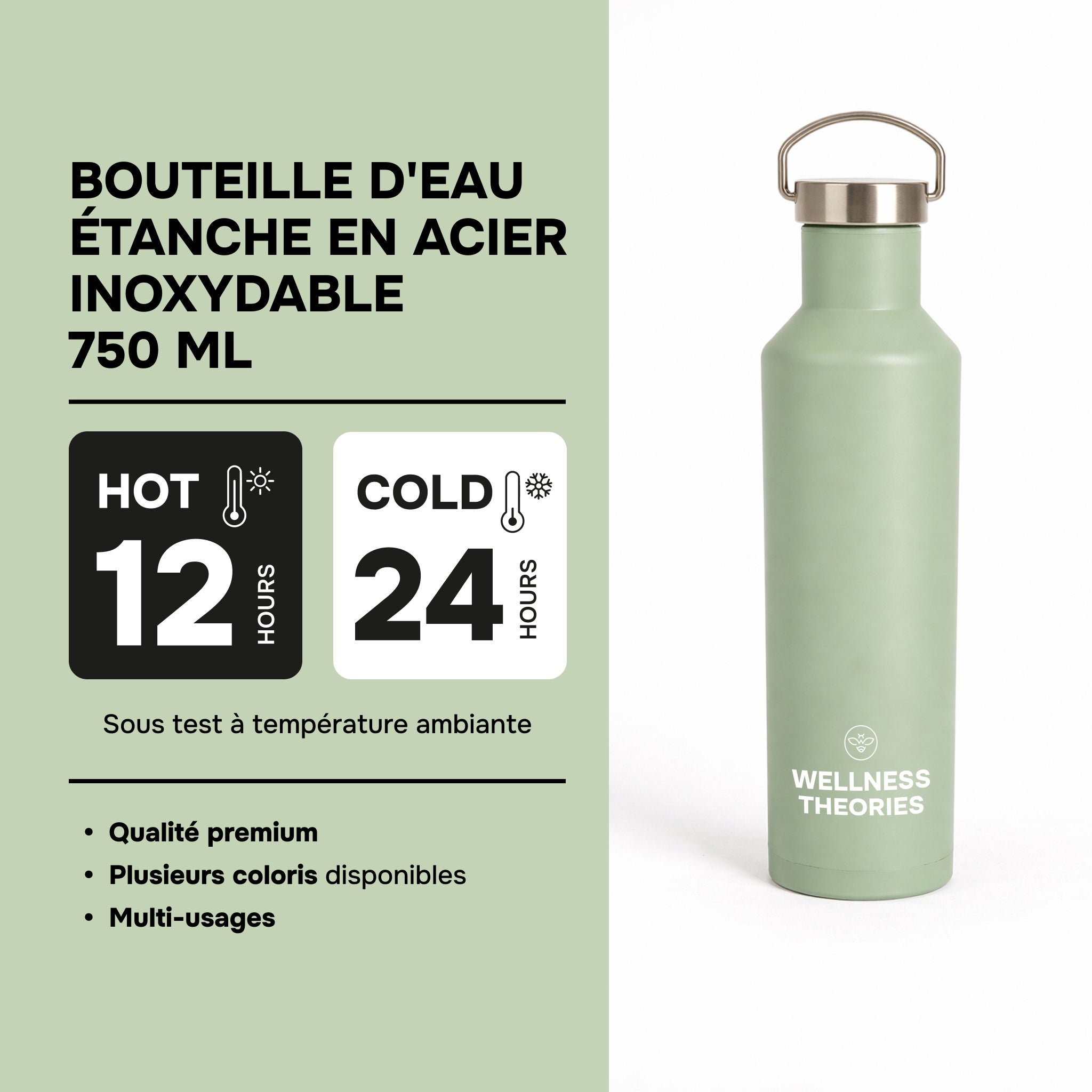 Alliez hydration, elegance and well-being with the Wellness Theories 750 ml insulated bottle, perfect for keeping you company all day long.