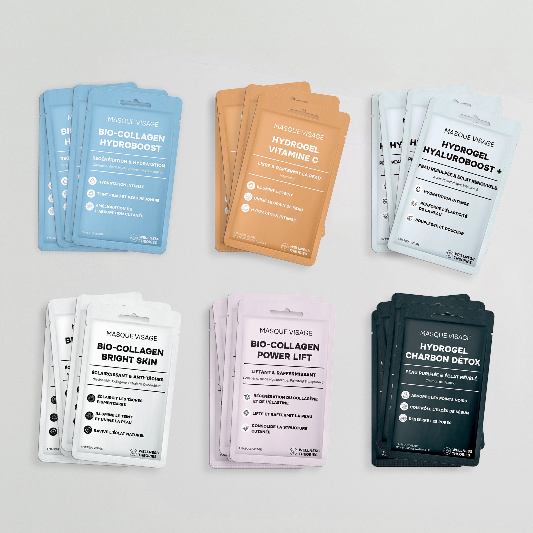 HYDROGEL VITAMIN C: AQUA, PROPYLENE GLYCOL, GLYCERIN, CHONDRUS CRISPUS (CARRAGEENAN), 1,2-HEXANEDIOL, XANTHAN GUM, GLUCOMANNAN, HYDROXYACETOPHENONE, ALLANTOIN, ALGIN, CELLULOSE GUM, SYNTHETIC FLUORPHLOGOPITE, 3-O-ETHYL ASCORBIC ACID, POTASSIUM CHLORIDE, GLUCOSE, CI 77891, CAPRYLYL GLYCOL, ETHYLHEXYLGLYCERIN, PEG-40 HYDROGENATED CASTOR OIL, CI 77491, PARFUM, CI 75470.