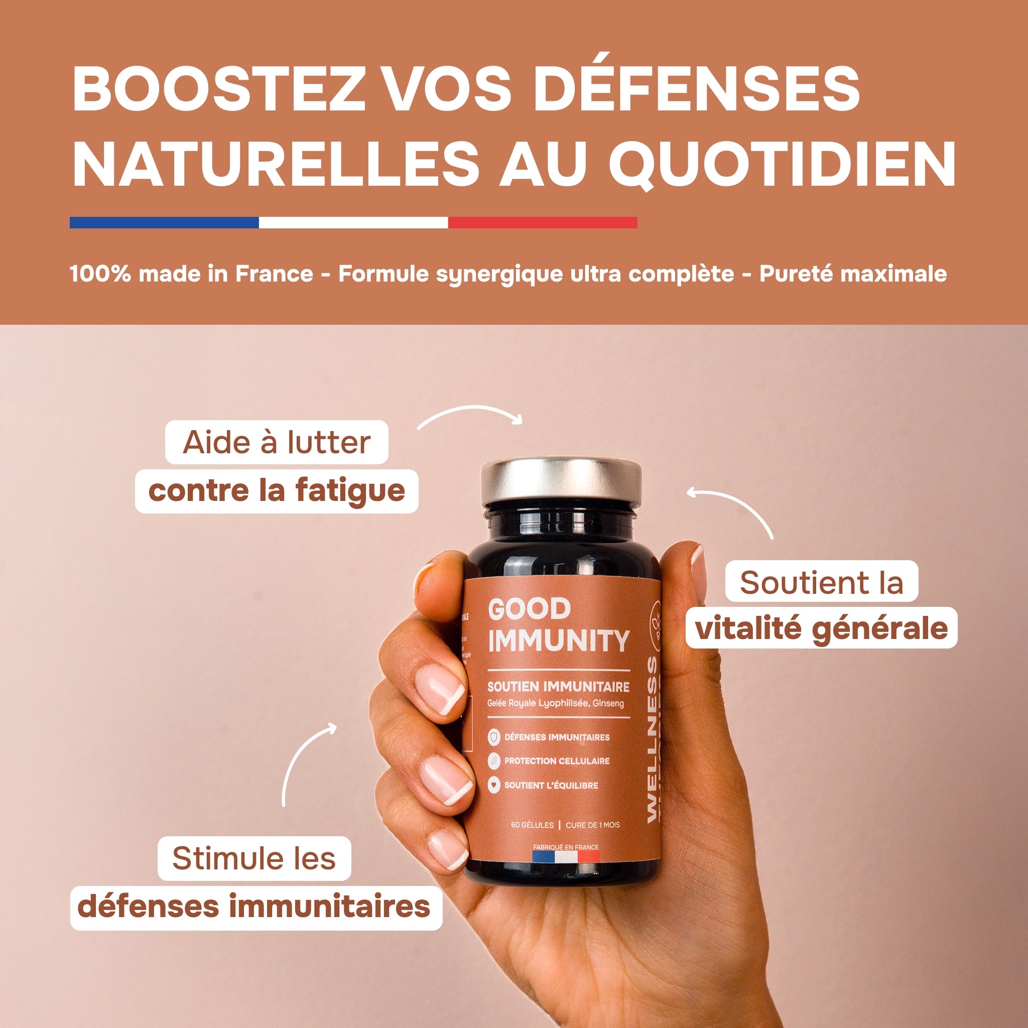 GOOD IMMUNITY – Natural Defenses, Vitality & Resistance – 60 Capsules – 1-Month Treatment – Made in France