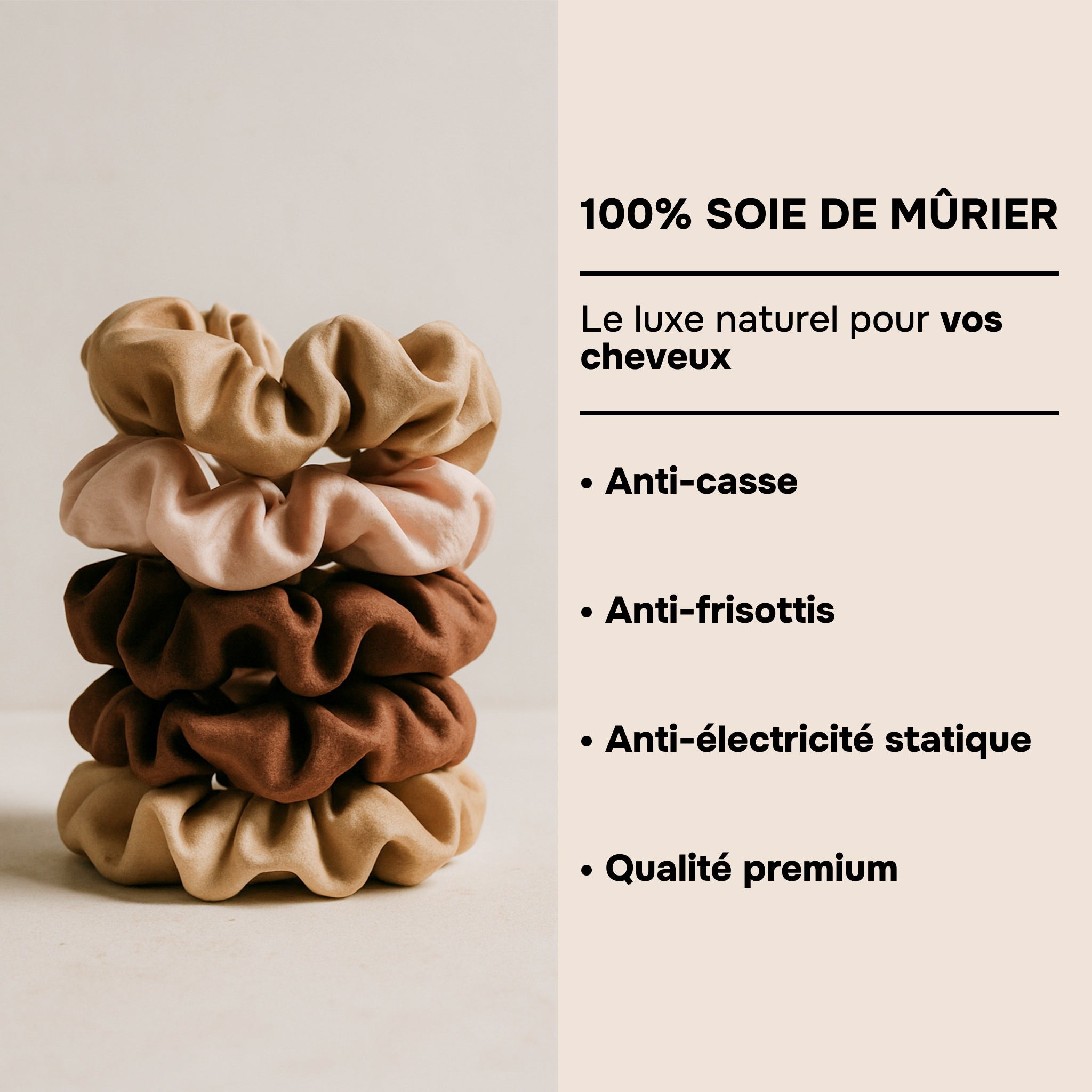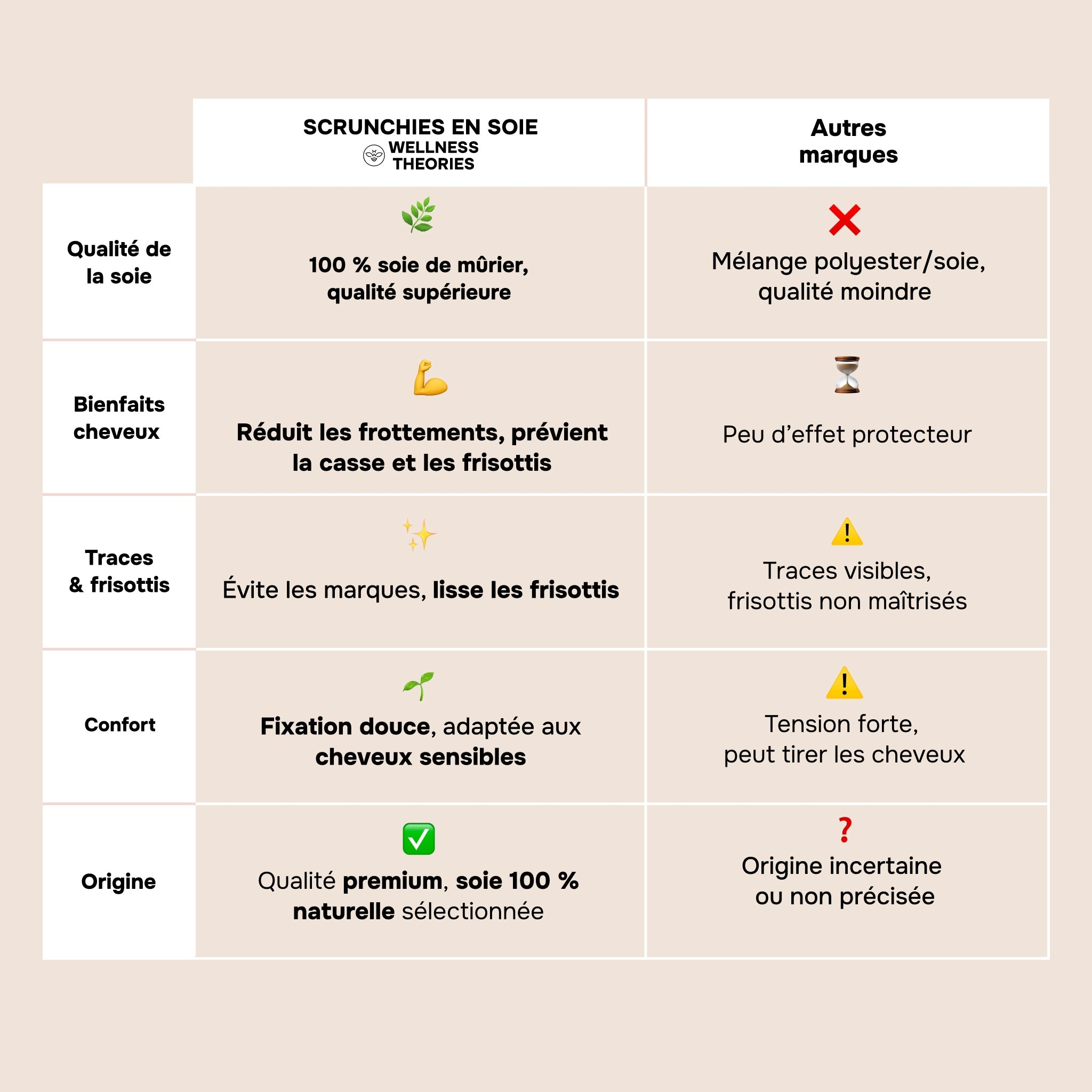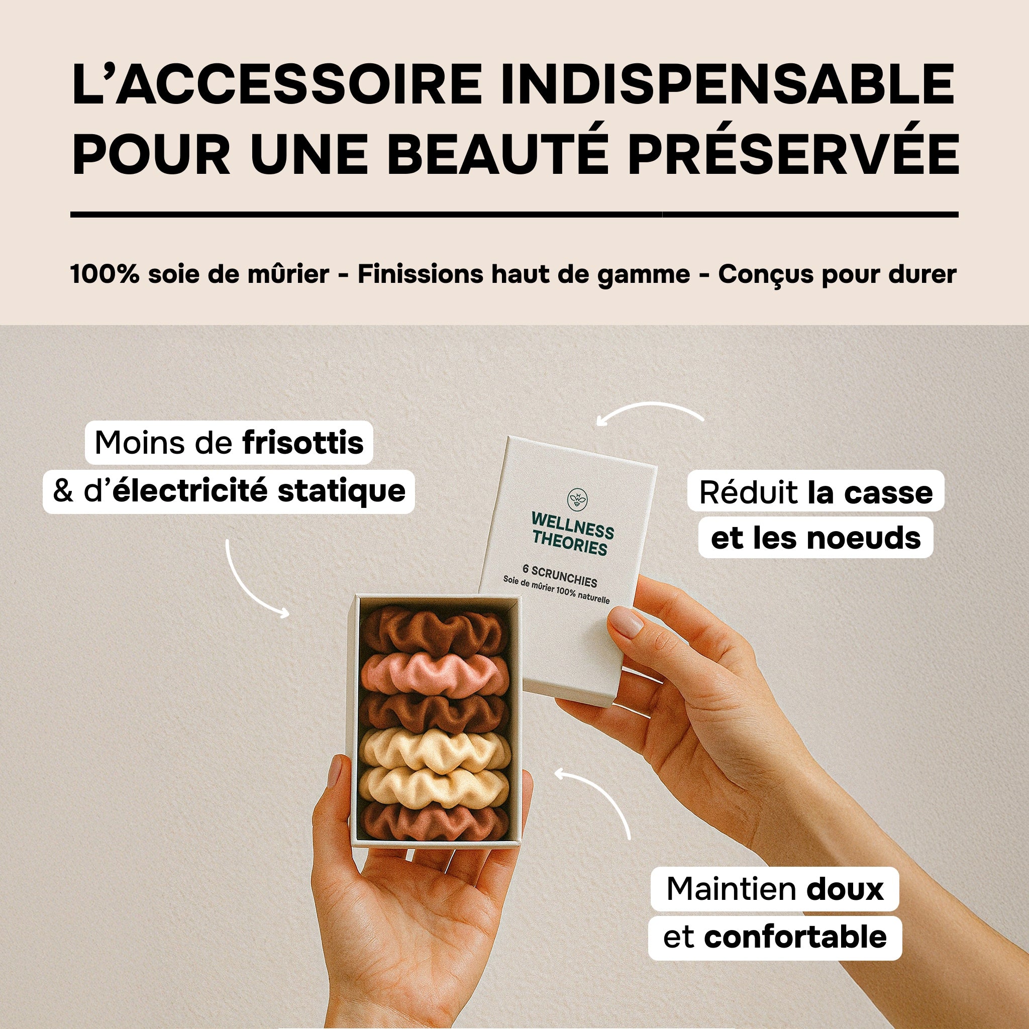 Protect your hair length: our silk scrunchies reduce breakage and frizz from the very first use.