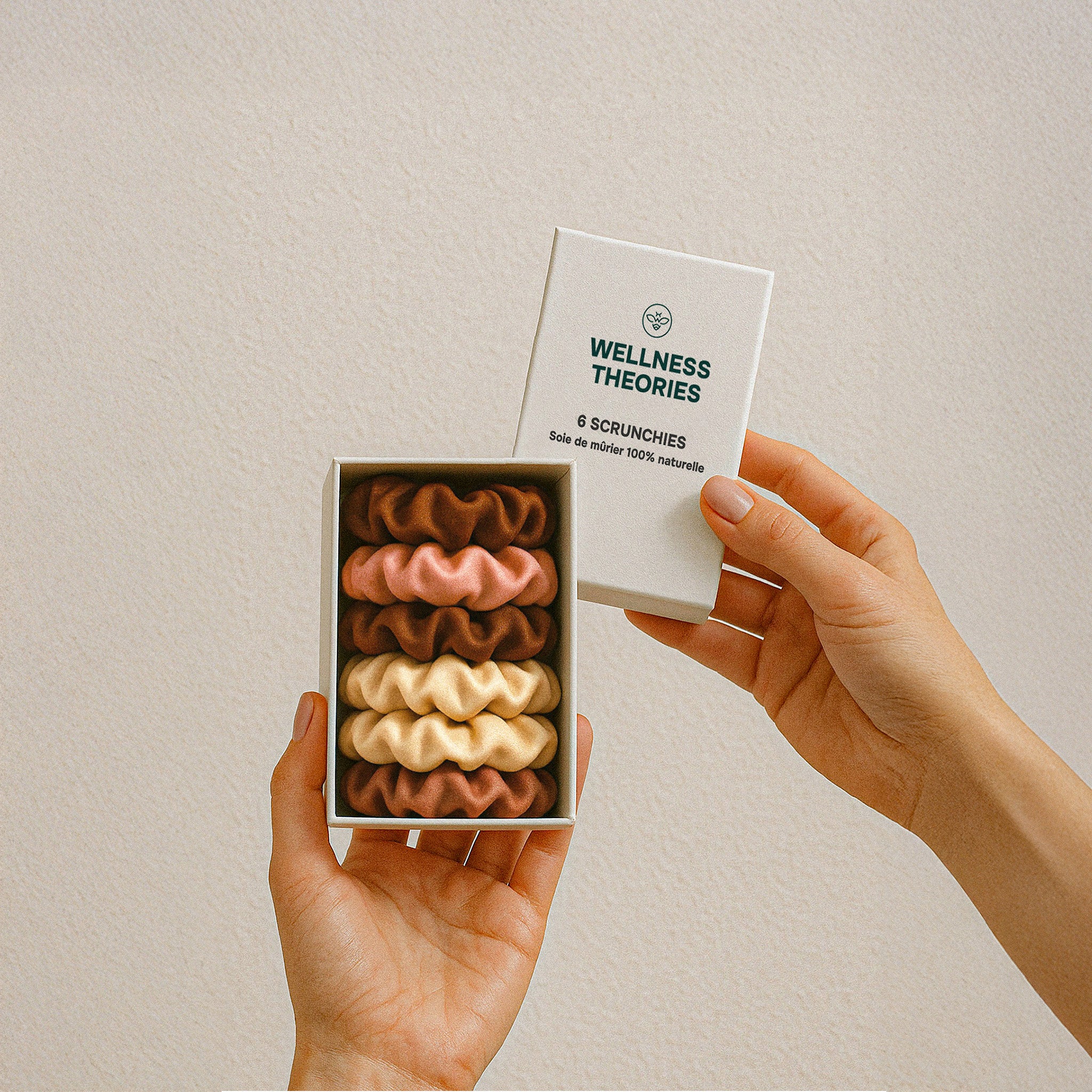 Who are they for? People who care about keeping their hair and skin healthy. Our mulberry silk scrunchies reduce friction, limit breakage and frizz, while preserving natural moisture. The ideal accessory for absolute comfort every day, day and night.