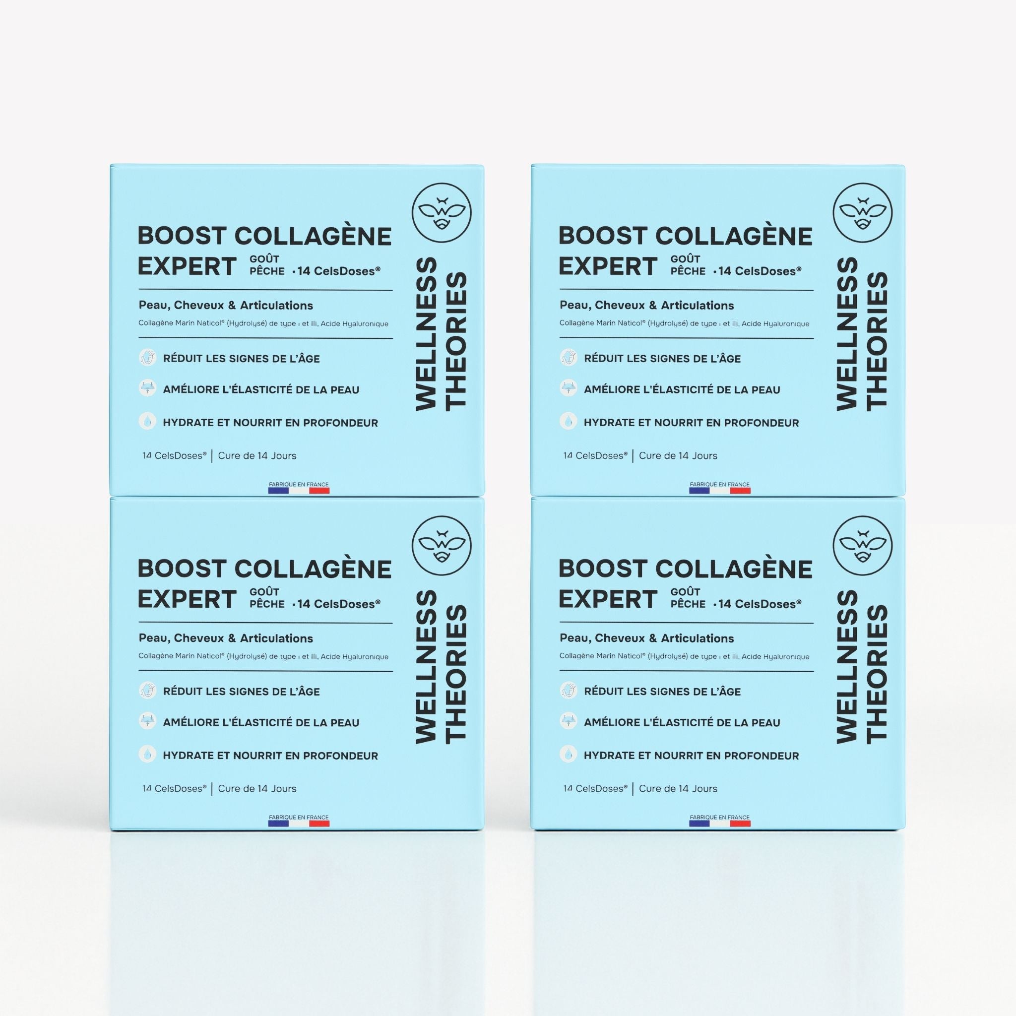 4X BOOST COLLAGEN EXPERT PACK – Peach Flavor – 2500 mg of Marine Collagen Type I & III, Hyaluronic Acid, CoQ10, Vitamins C & B6, Selenium, Wild Pansy – Radiance, Elasticity & Firmness – CelsDose® – Made in France