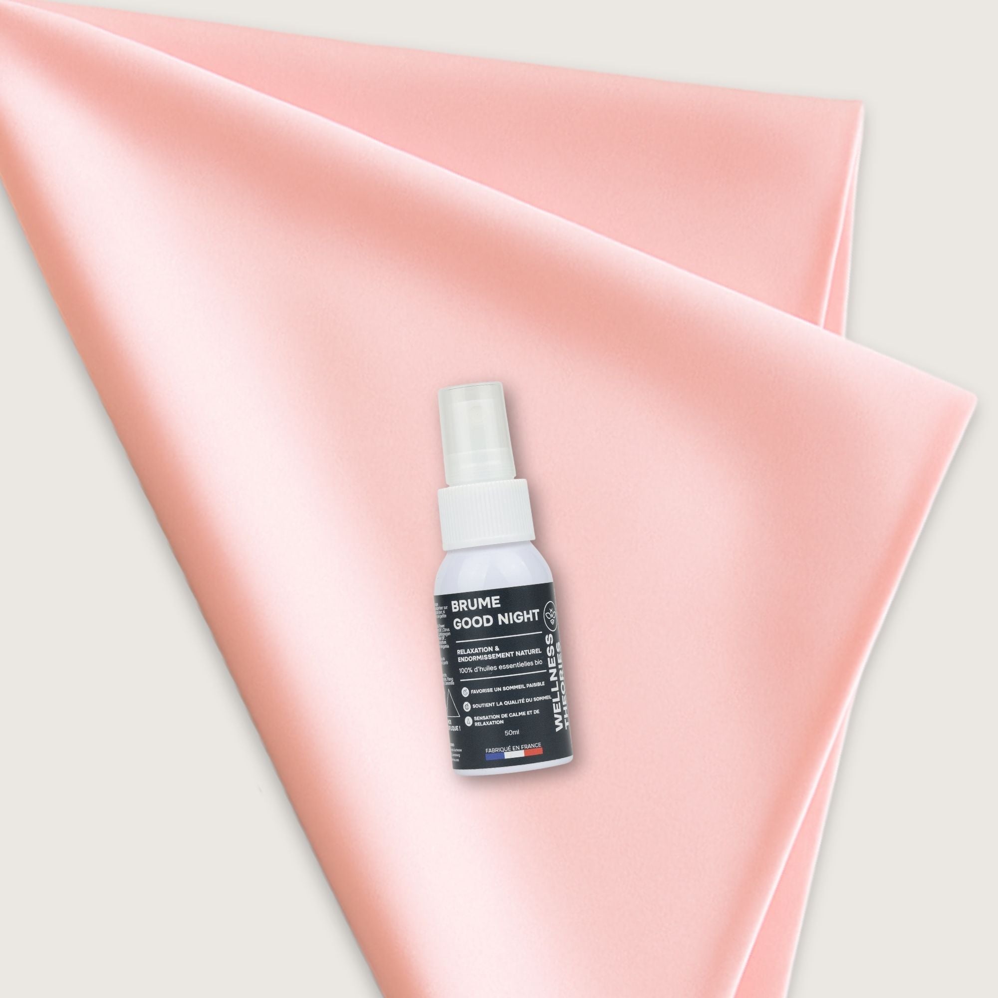 22MM PINK SILK PILLOWCASE PACK + GOOD NIGHT SPRAY – Organic Lavandin, Chamomile, Ylang-Ylang & Sweet Orange Essential Oils – Intense Relaxation, Natural Sleep & Nighttime Comfort – Beauty & Serenity at Bedtime