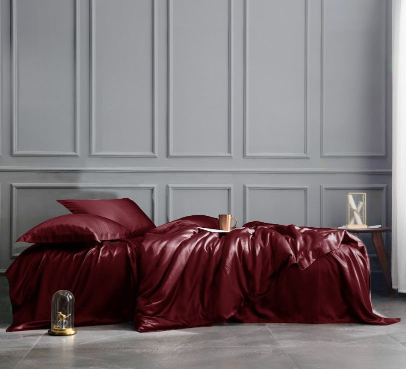 Plum Luxury Complete Bedding Set – Duvet Cover, Flat Sheet & 2 Pillowcases – 100% Natural Mulberry Silk 22 Momme – Royal Comfort – Beautiful Skin & Hair