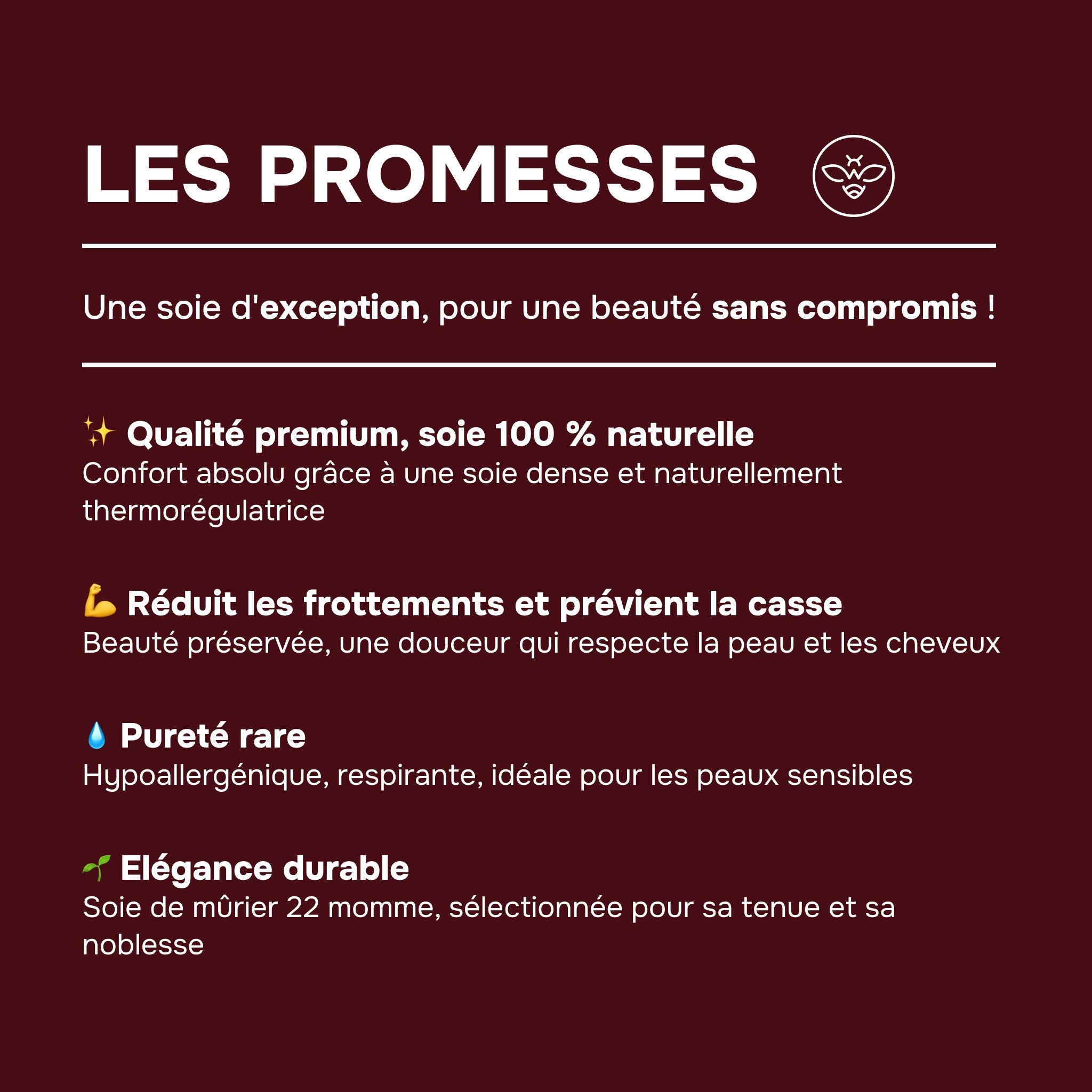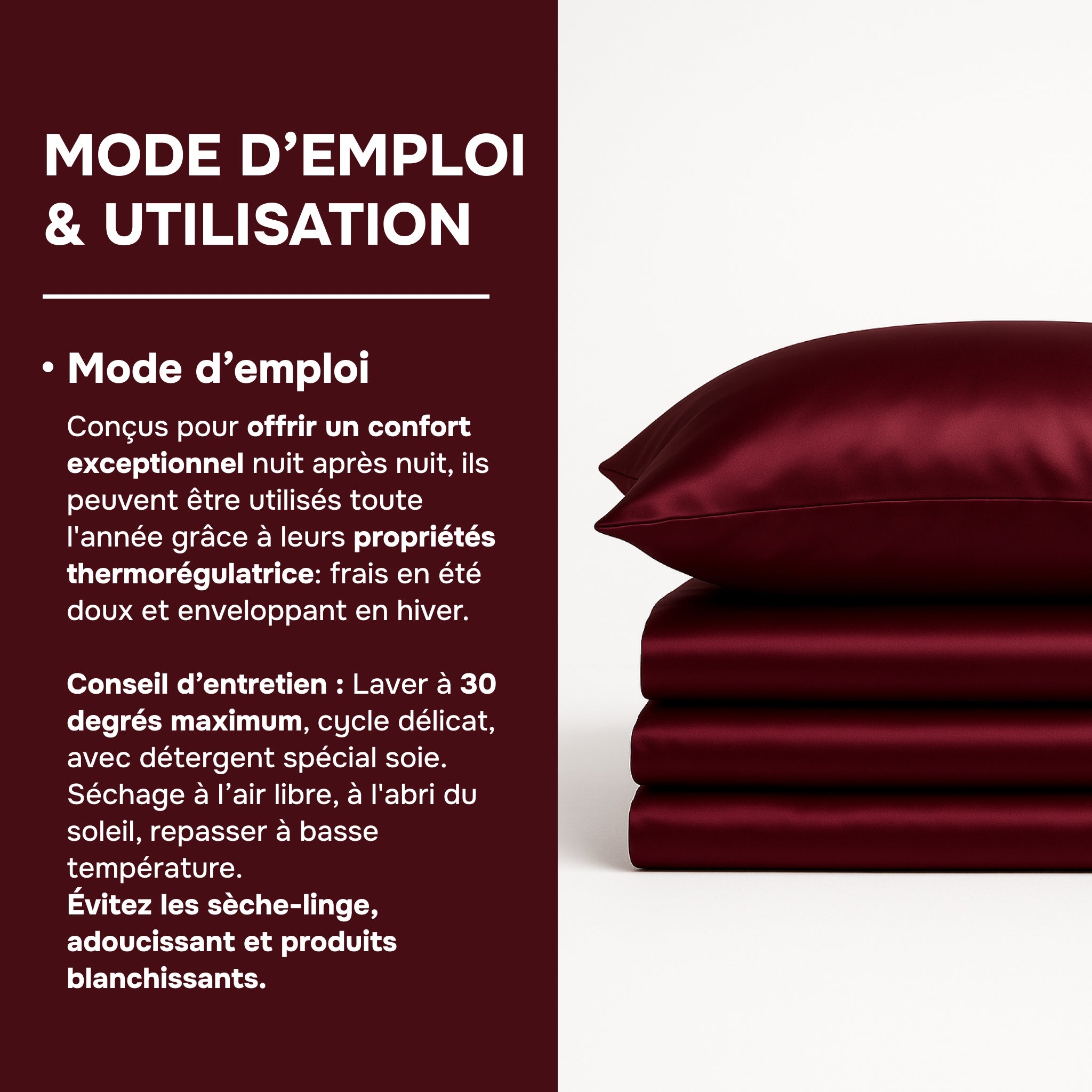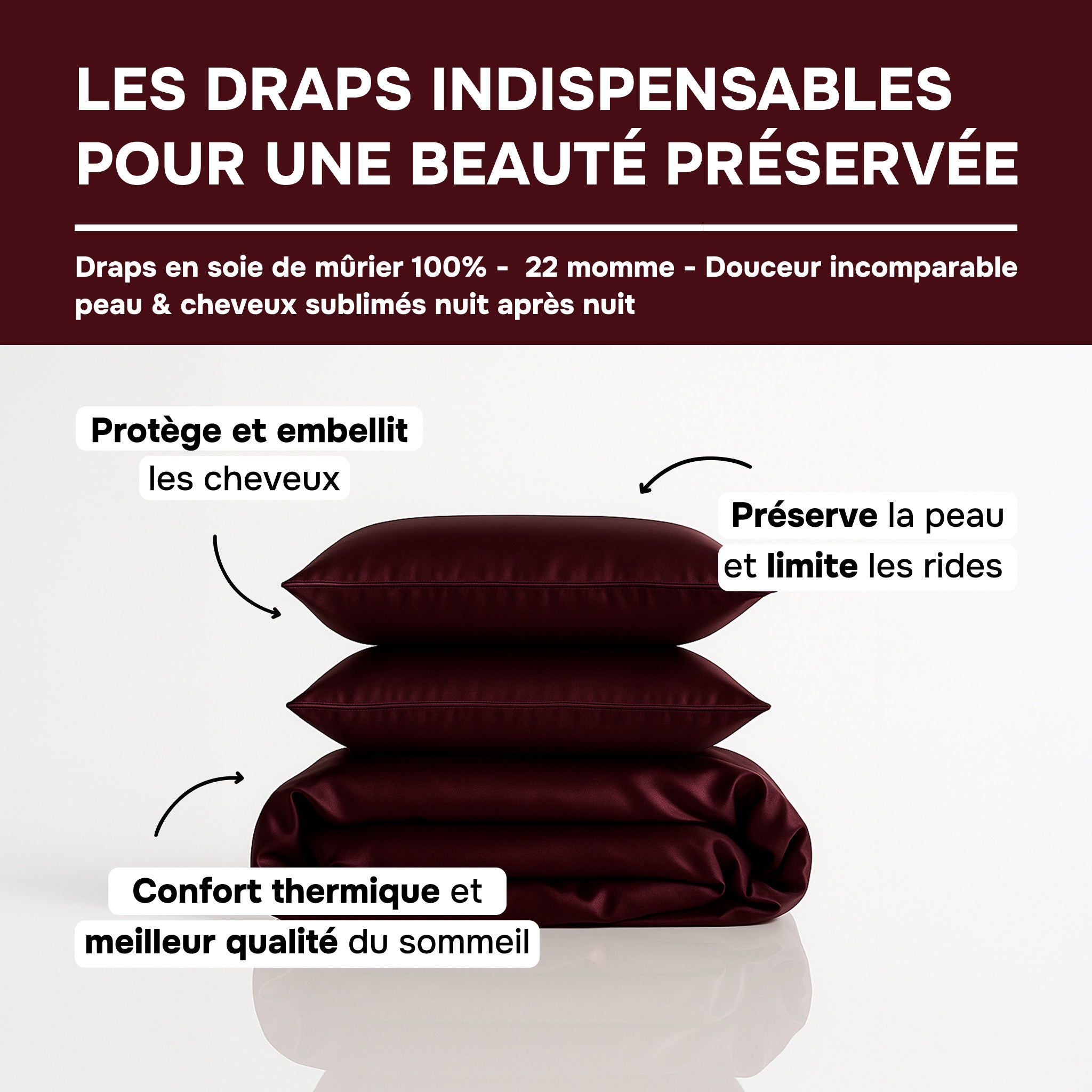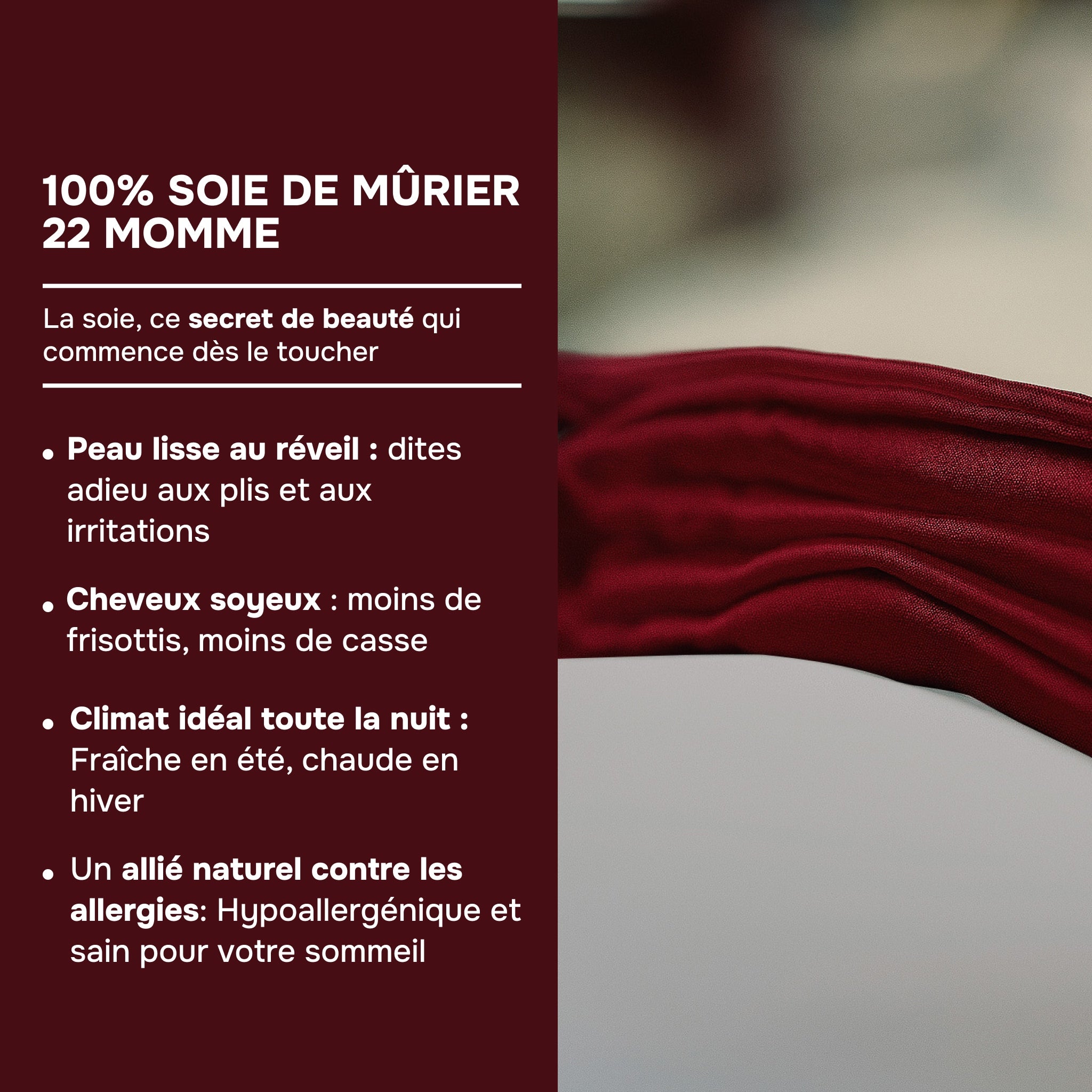 Who is it for? People looking for exceptional sleep and royal comfort, while taking care of their skin and hair. This complete bedding set made from 100% natural 22 momme mulberry silk is ideal for those who want to limit friction, preserve skin and hair moisture, and avoid sleep marks. Perfect for sensitive skin and fragile hair, it transforms every night into a luxurious experience, with a silky, thermoregulating, and hypoallergenic feel.