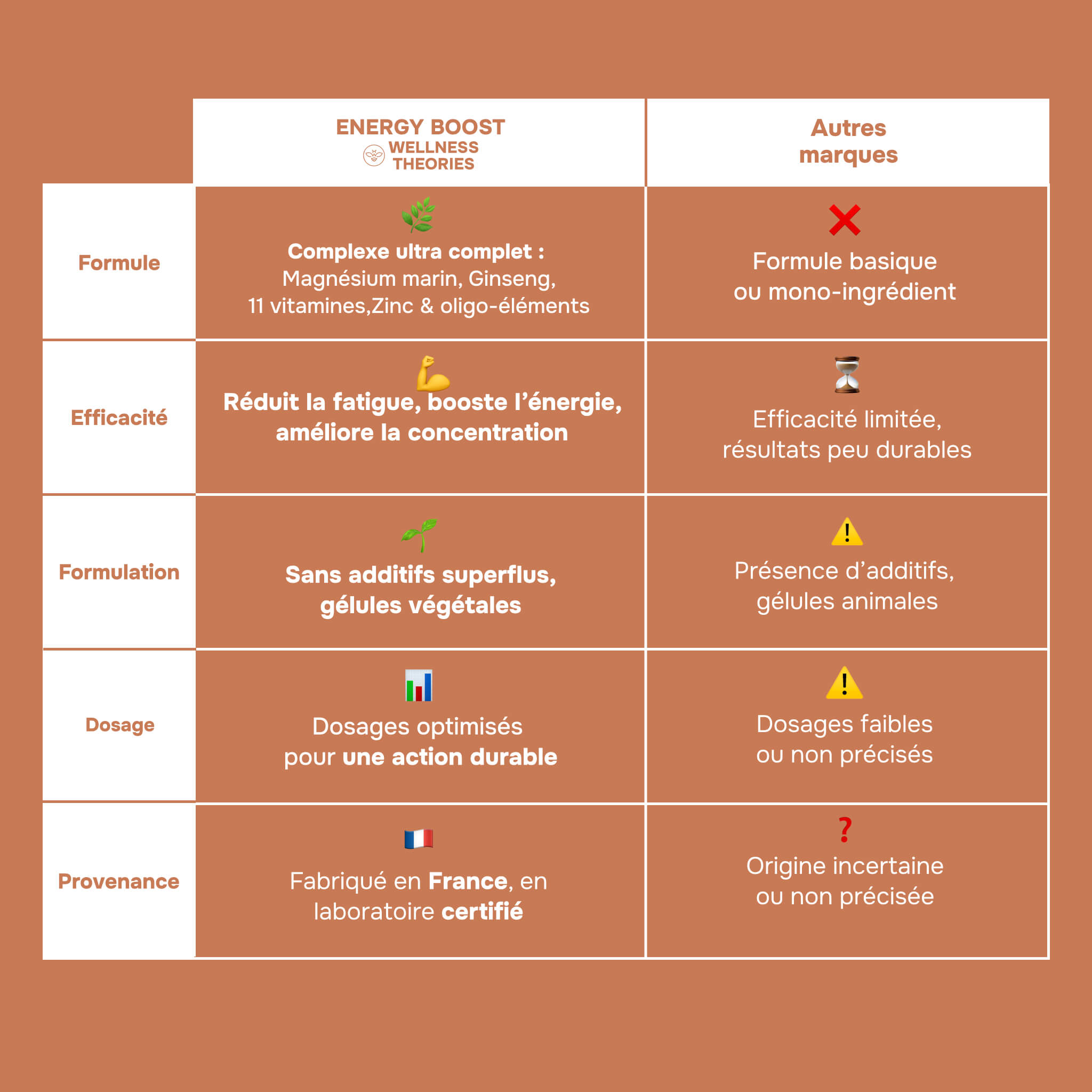 ENERGY BOOST – Fórmula Completa con Ginseng, Magnesio & Vitaminas – Energía & Vitalidad Diaria – 60 Cápsulas – Cura de 1 Mes – Made in France