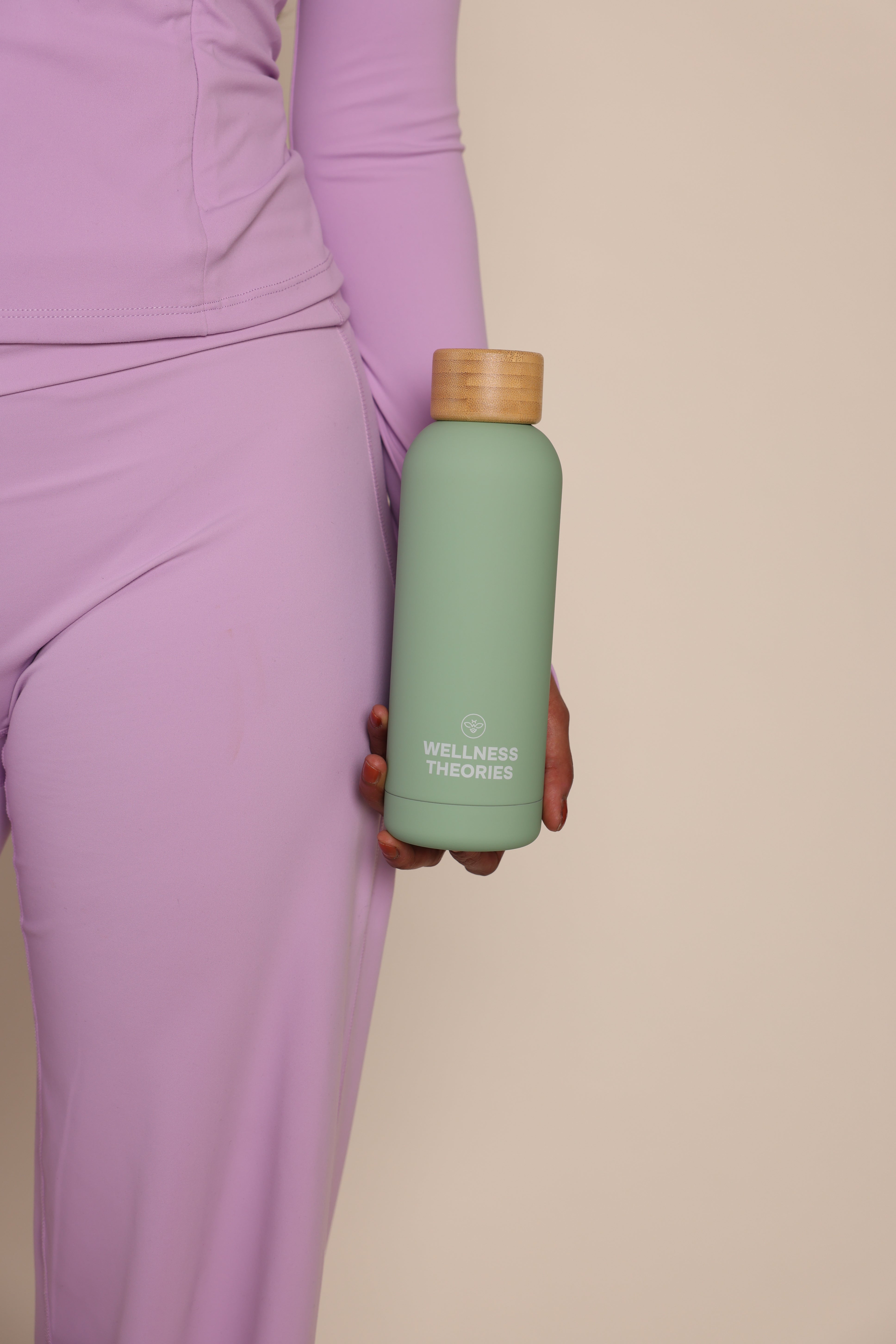 Hidrátate con elegancia gracias a la botella isotérmica Wellness Theories, con un diseño minimalista y natural, pensada para acompañar tu bienestar diario.