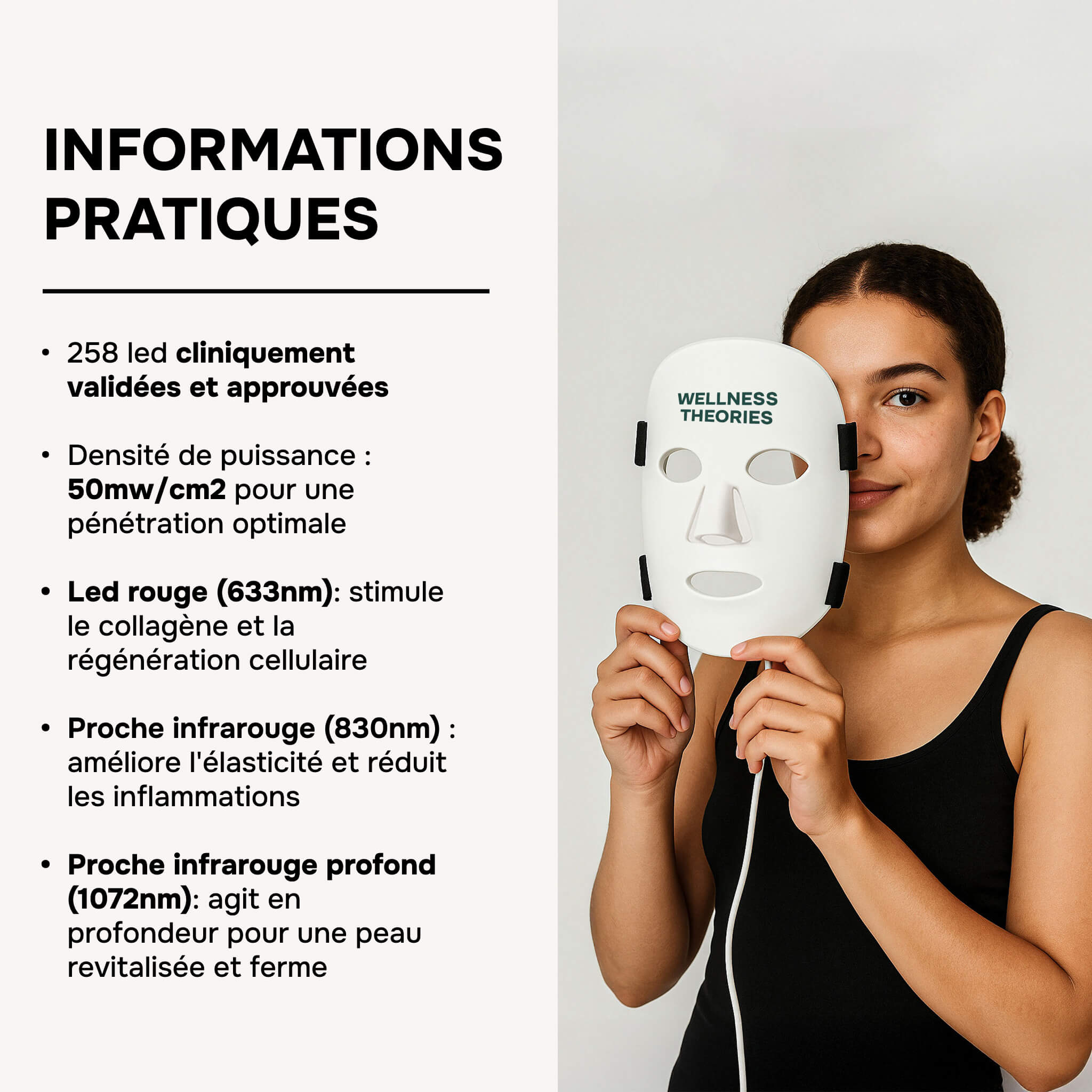 Utilizada regularmente, la Mascarilla Facial LED LUMINIS no es sólo un tratamiento antiedad: es una solución completa para sublimar la piel, prevenir el envejecimiento, corregir las imperfecciones y revelar una luminosidad natural duradera.