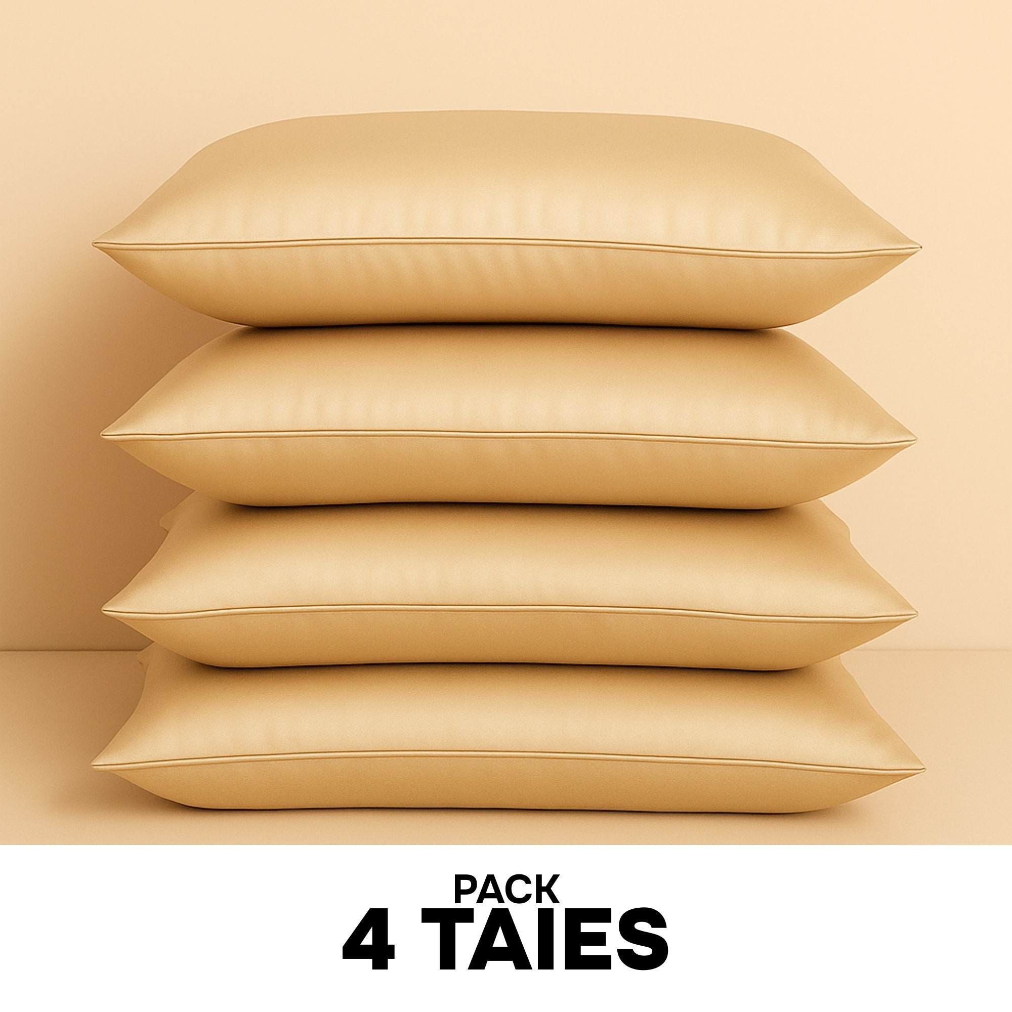 Pack de 4 fundas de almohada de seda de morera 22 mm beige – 100% natural – Antiedad, preservan la hidratación y limitan la rotura del cabello – Lujo & confort nocturno