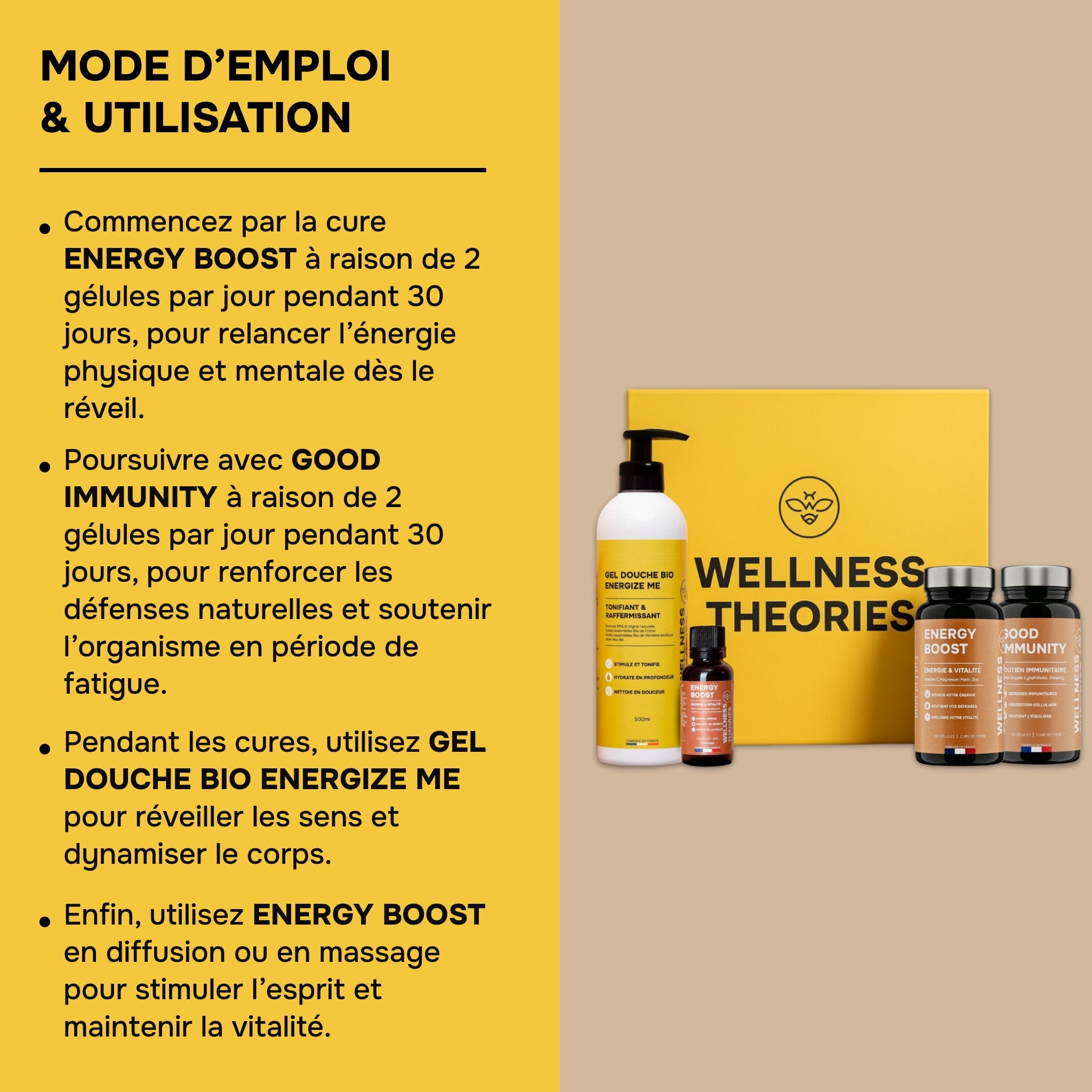 Energy BOX - L'Alliance Énergie : Suplementos + Aromaterapia + Gel de Ducha Tonificante - Estimulante para Cuerpo y Mente - Made In France