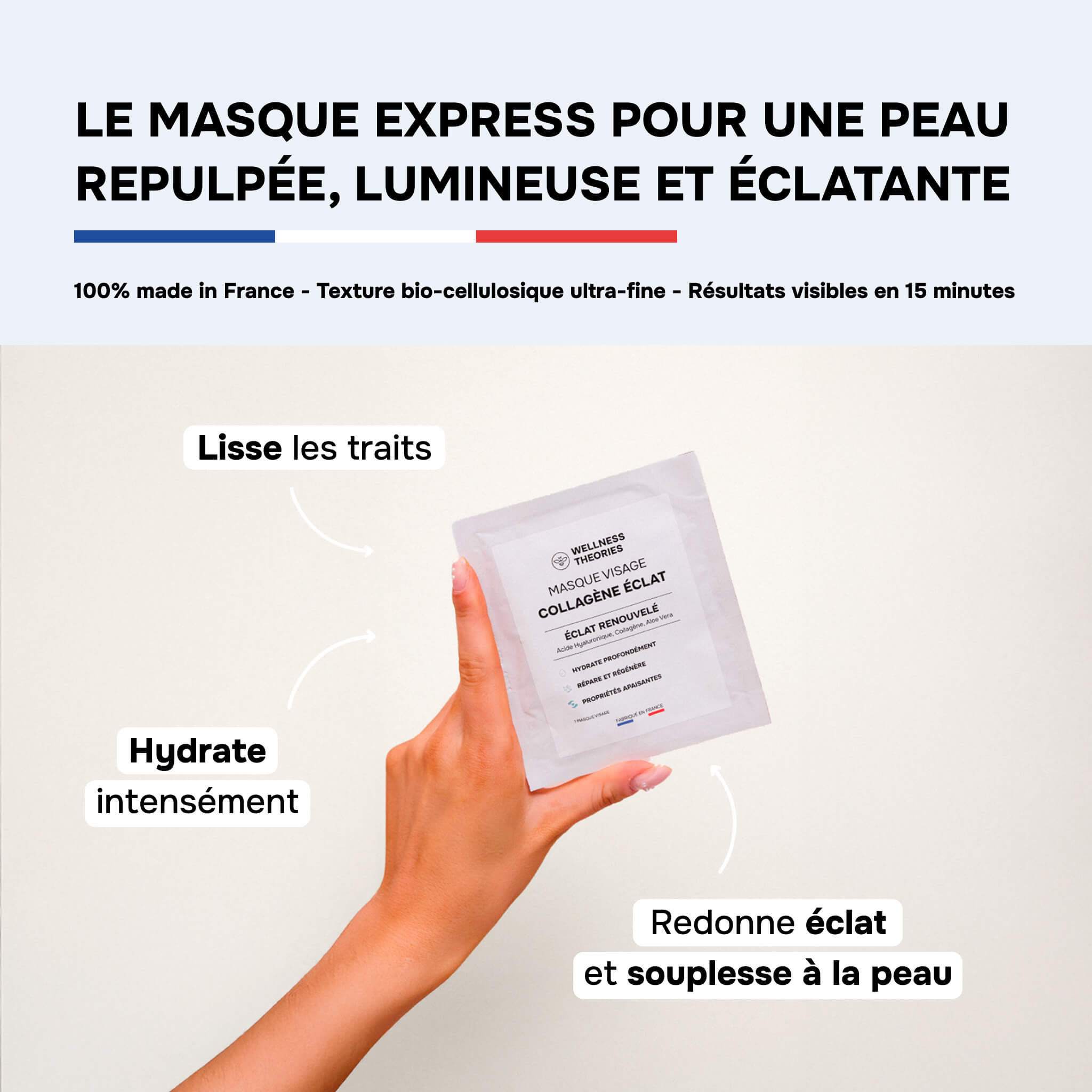 MASCARILLA FACIAL COLÁGENO ÉCLAT – Fórmula Intensiva con Colágeno, Ácido Hialurónico & Aloe Vera – Piel Repulpada, Suave & Radiante al Instante – Made in France