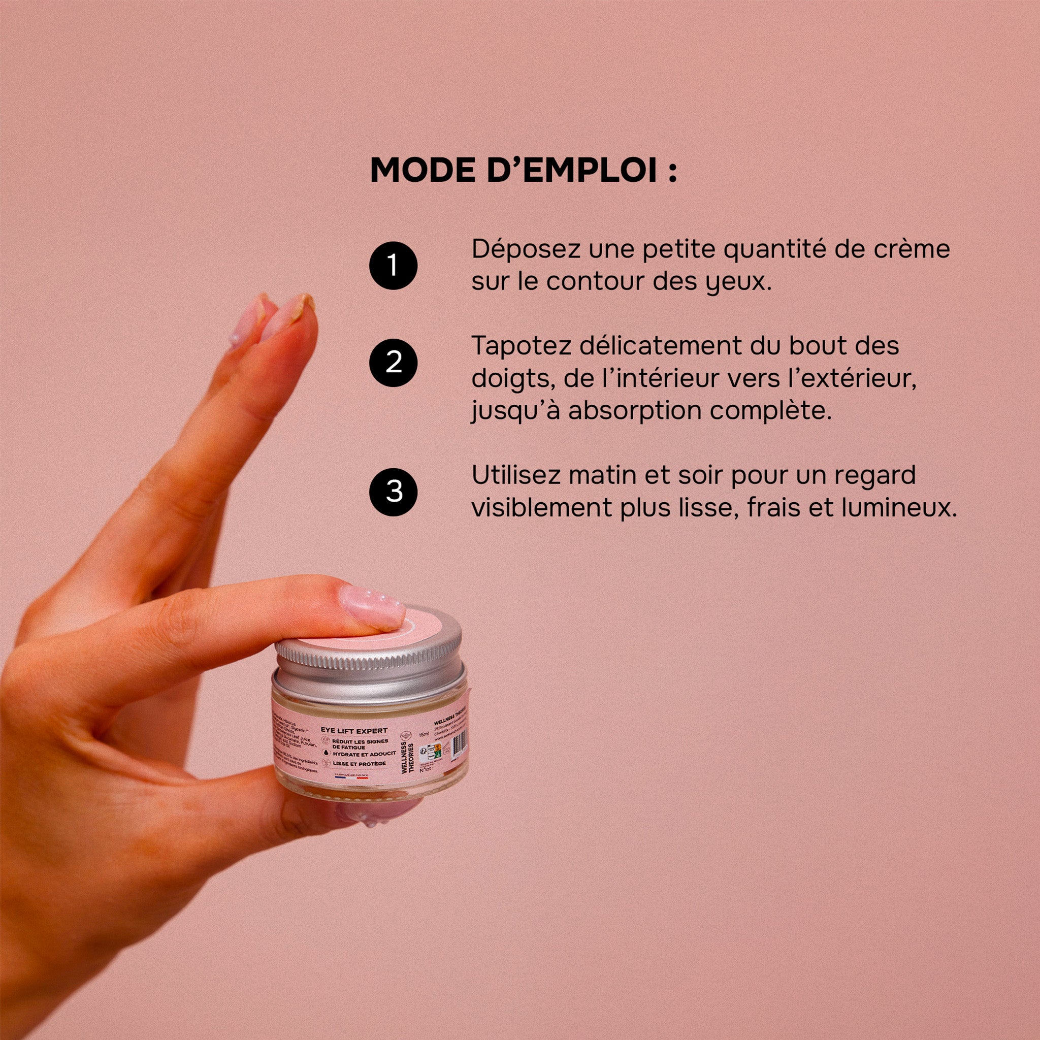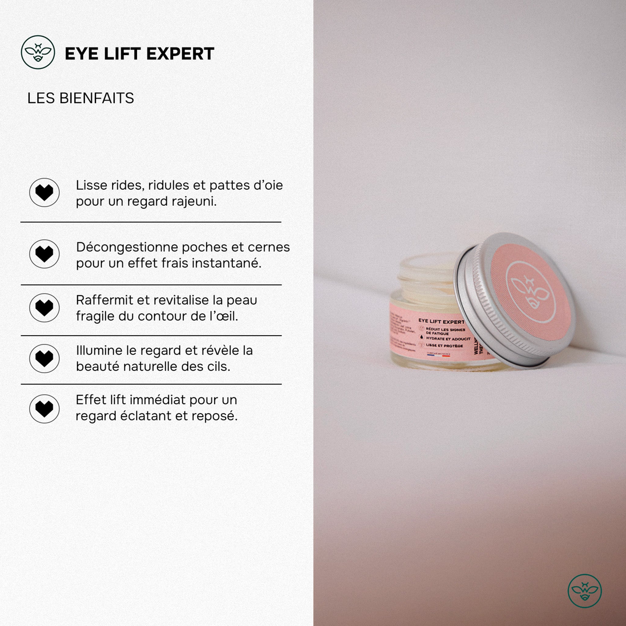EYE LIFT EXPERT - Efecto lifting inmediato y antifatiga - Tratamiento alisante orgánico para los ojos - 98% de origen natural - Tarro de 15 ml - Made in France