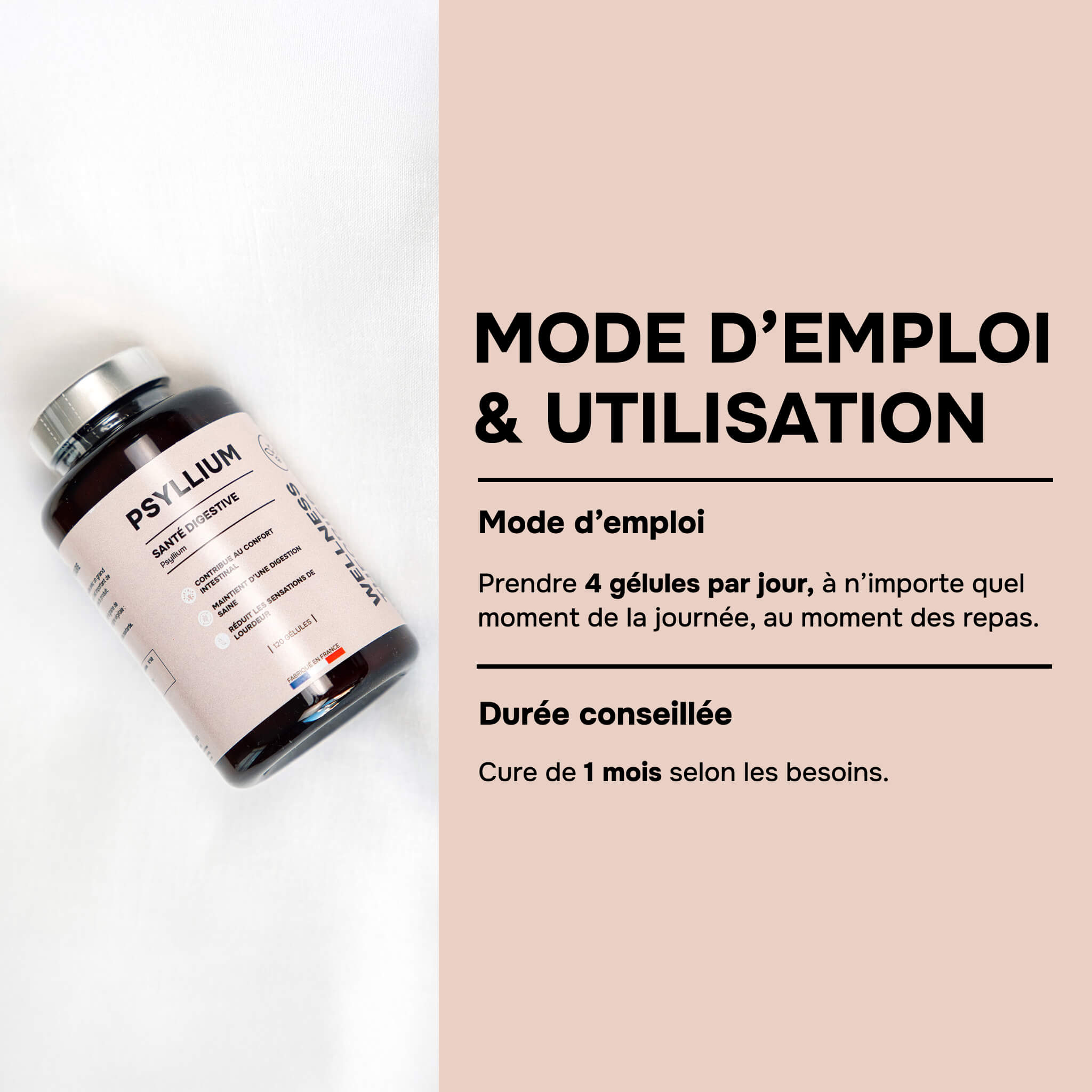PSYLLIUM – Fórmula Natural para el Tránsito Intestinal, la Saciedad & el Bienestar Digestivo – 120 Cápsulas Vegetales – Cura de 1 Mes – Made in France