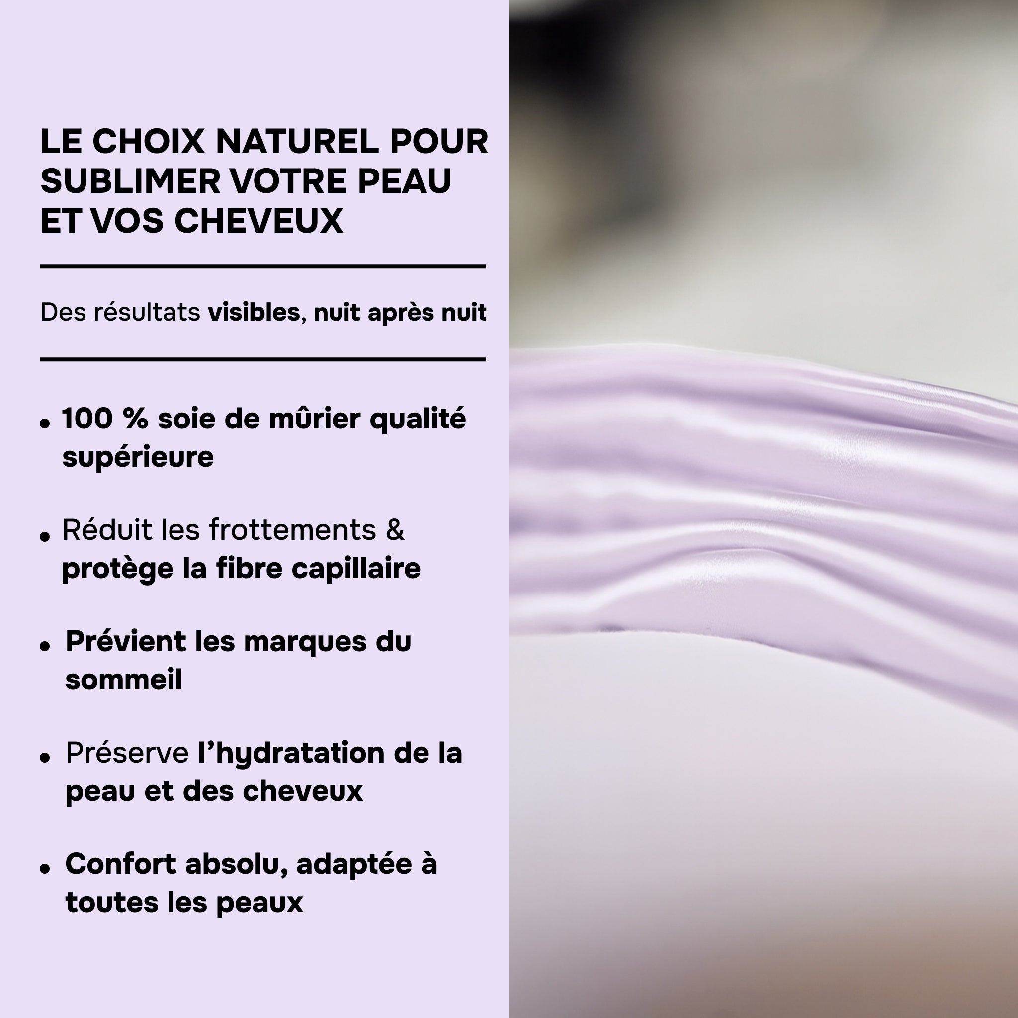 Compuesta al 100 % de seda de morera, esta funda lujosa es suave, hipoalergénica y naturalmente termorreguladora. A diferencia del algodón, no absorbe los tratamientos aplicados por la noche y respeta el equilibrio cutáneo. Ayuda a mantener la piel lisa, a limitar la aparición de líneas finas y a conservar el cabello brillante y disciplinado. Un imprescindible de belleza para integrar en la rutina nocturna.