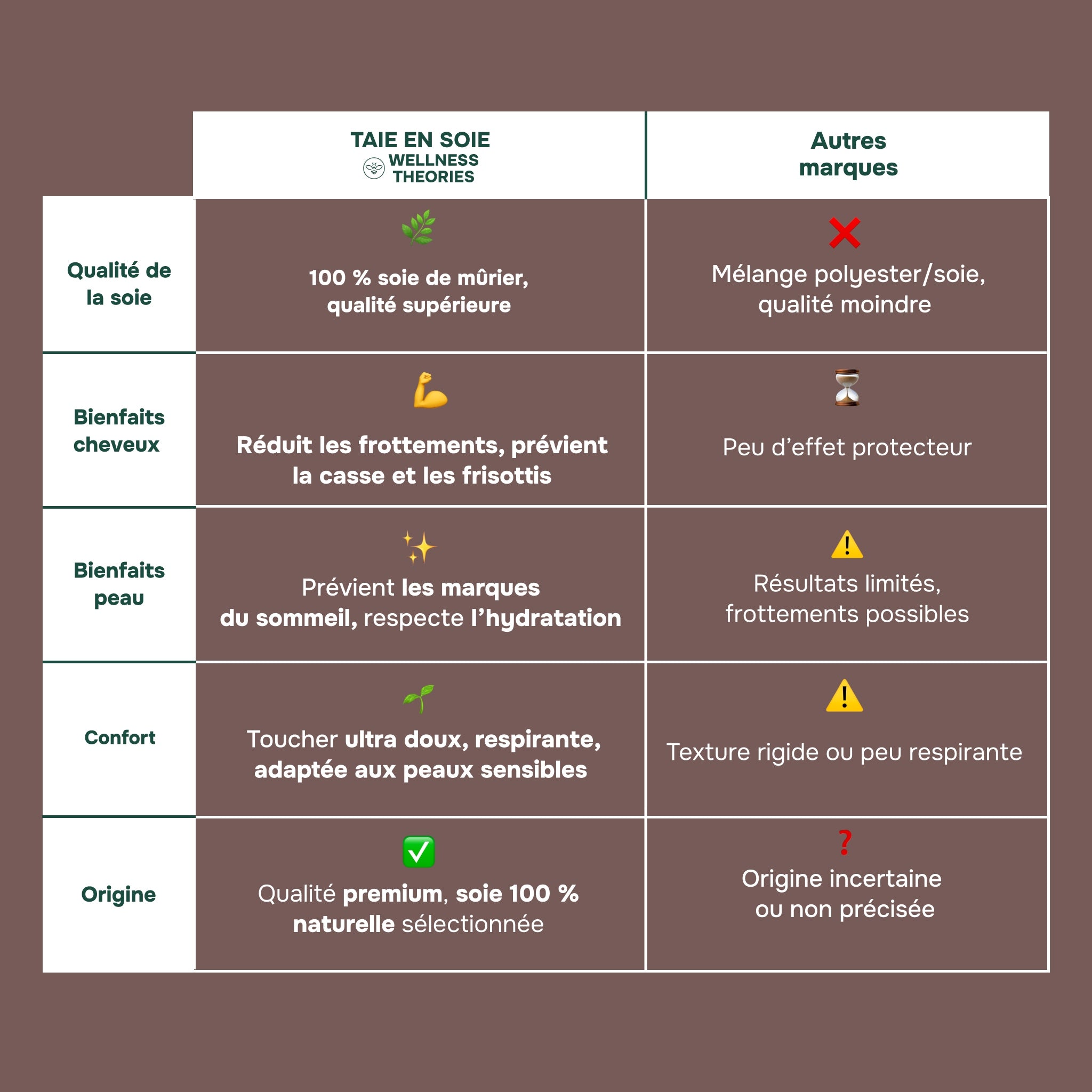 Compuesta al 100 % de seda de morera, esta funda lujosa es suave, hipoalergénica y naturalmente termorreguladora. A diferencia del algodón, no absorbe los tratamientos aplicados por la noche y respeta el equilibrio cutáneo. Ayuda a mantener la piel lisa, a limitar la aparición de líneas finas y a conservar el cabello brillante y disciplinado. Un imprescindible de belleza para integrar en la rutina nocturna.