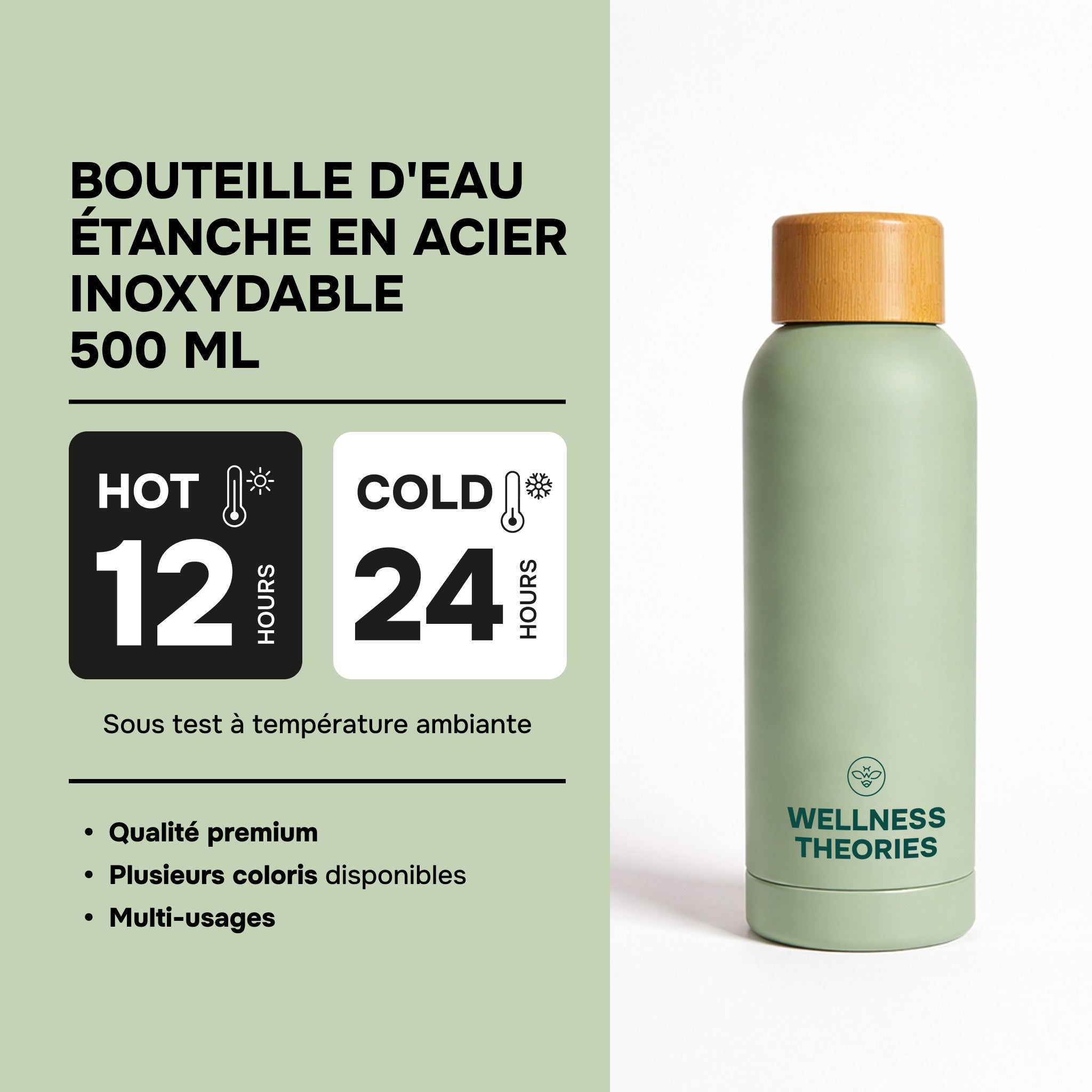 Hidrátate con elegancia gracias a la botella isotérmica Wellness Theories, con un diseño minimalista y natural, pensada para acompañar tu bienestar diario.