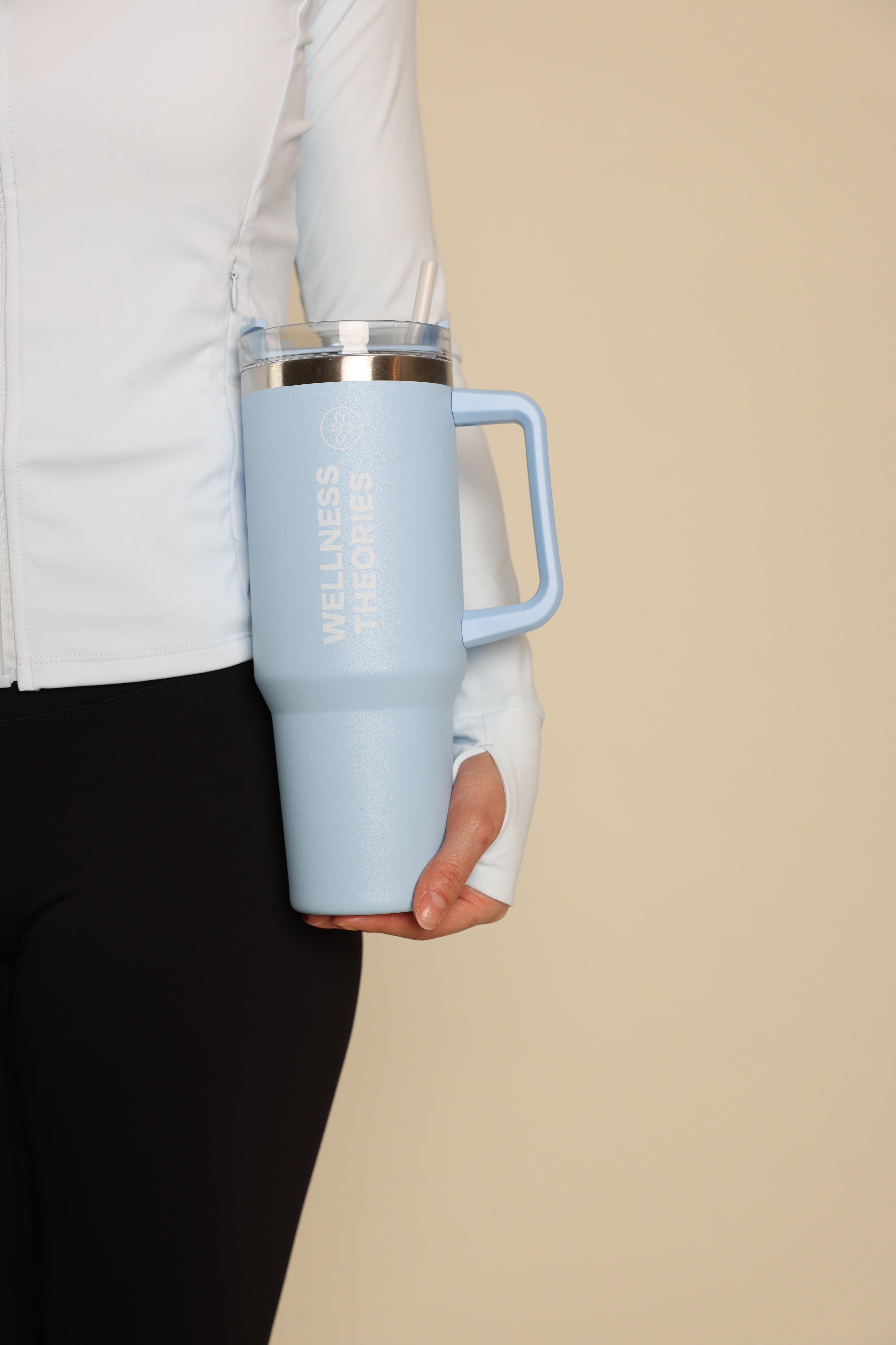WELLNESS THEORIES - Tazza termica con cannuccia 1,2 L – Acciaio inossidabile - Blu