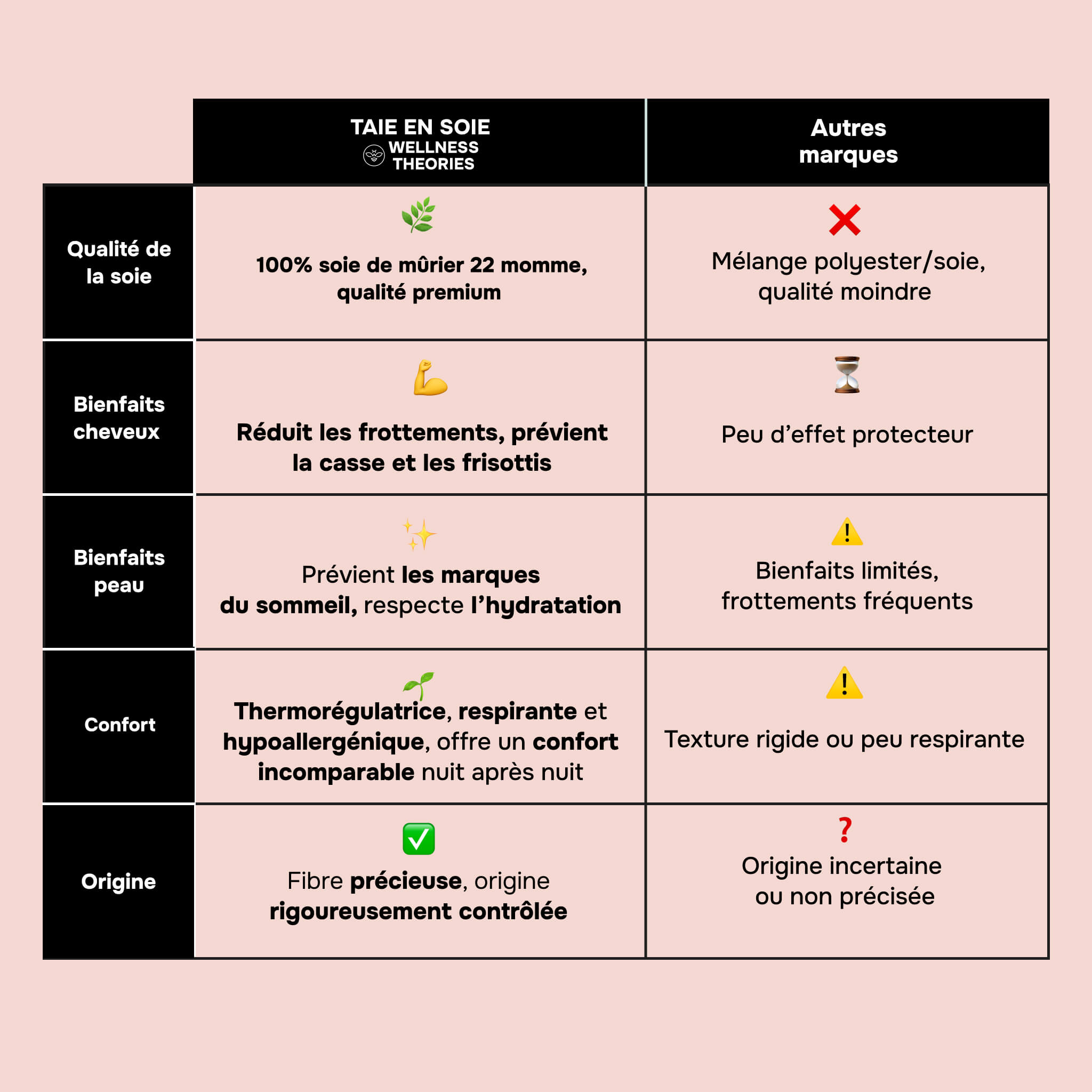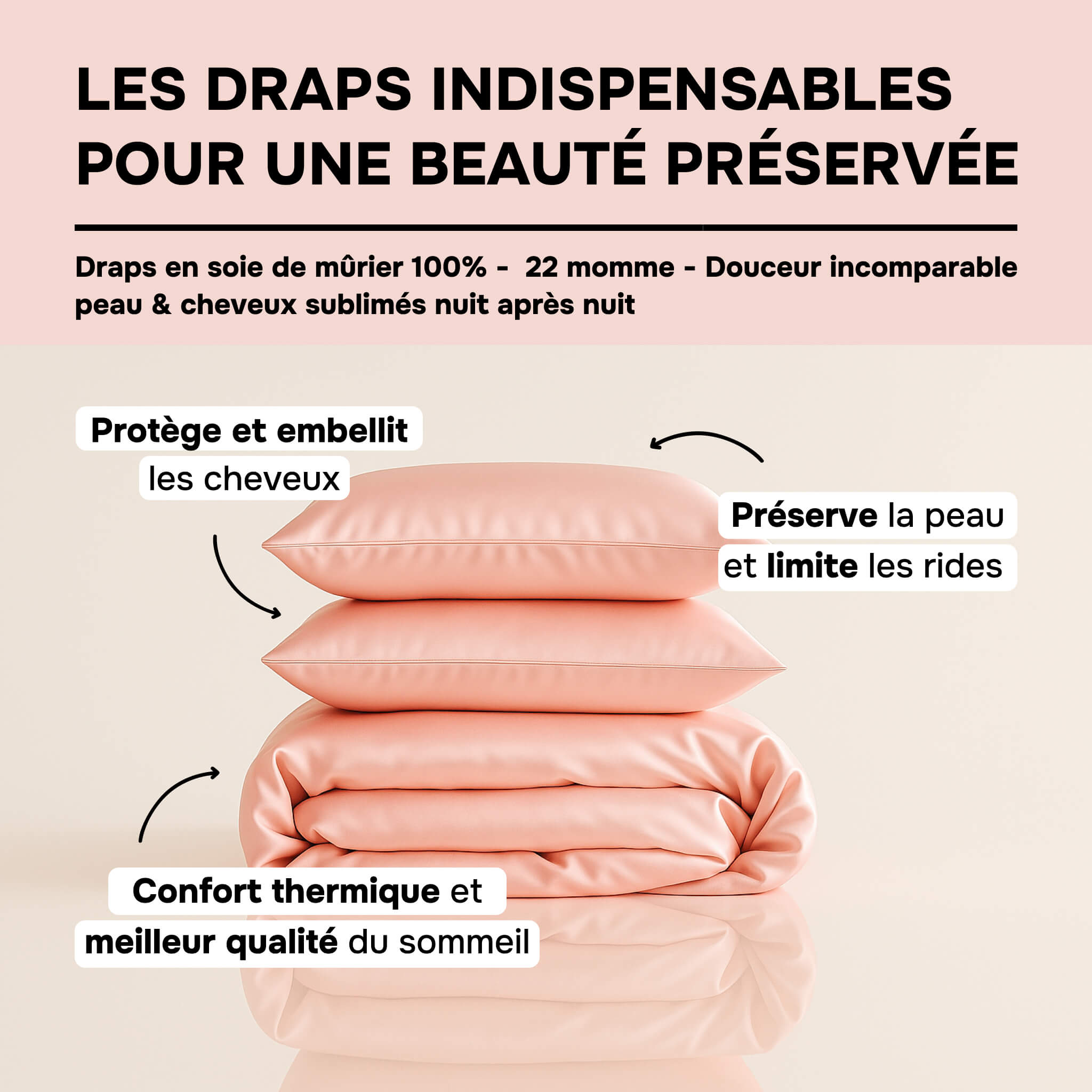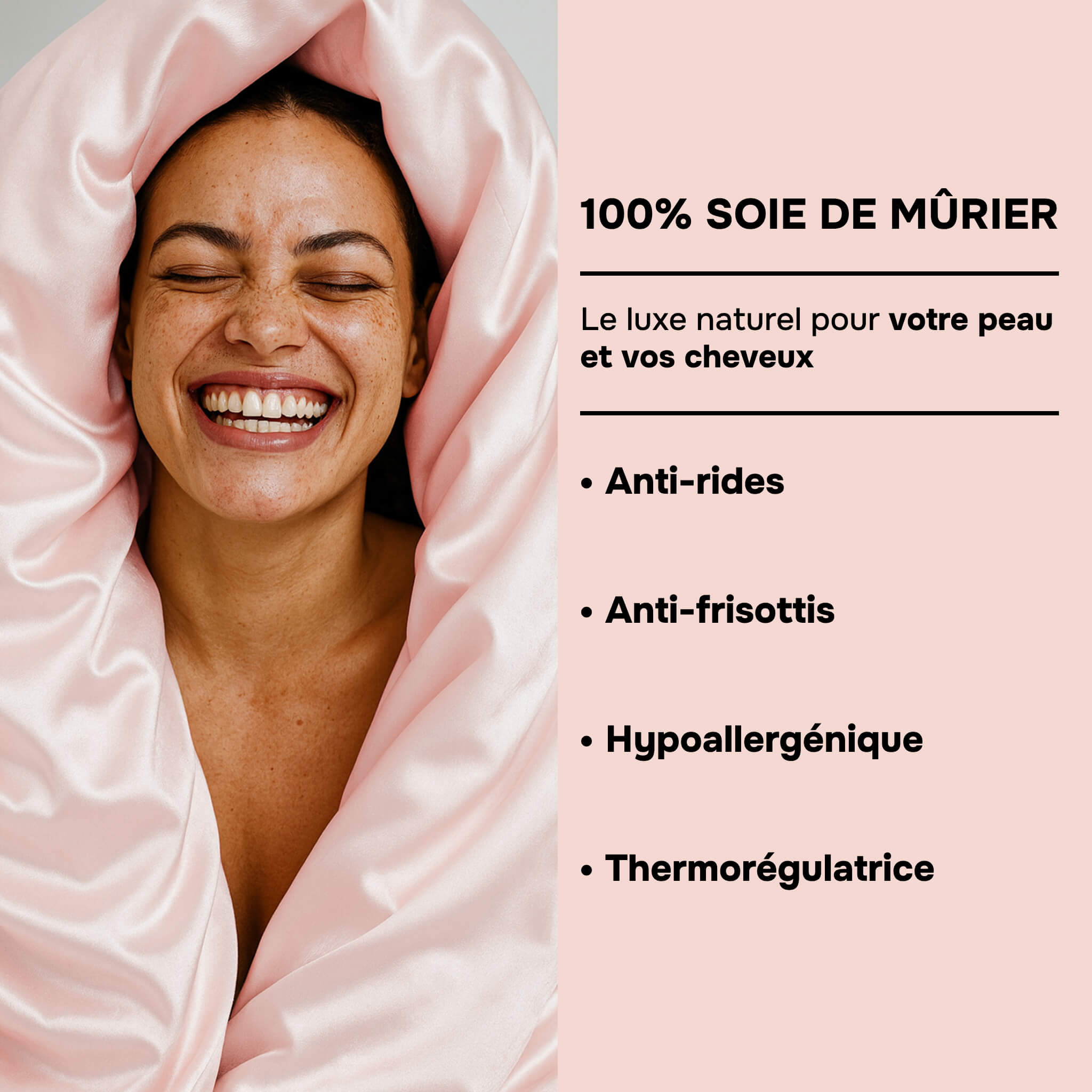 Ideale per tutti i tipi di pelle e di capelli, la biancheria da letto in seta aiuta a preservare l’idratazione, a limitare gli sfregamenti responsabili dell’effetto crespo, dei segni del sonno e della rottura dei capelli, rispettando al contempo l’equilibrio cutaneo