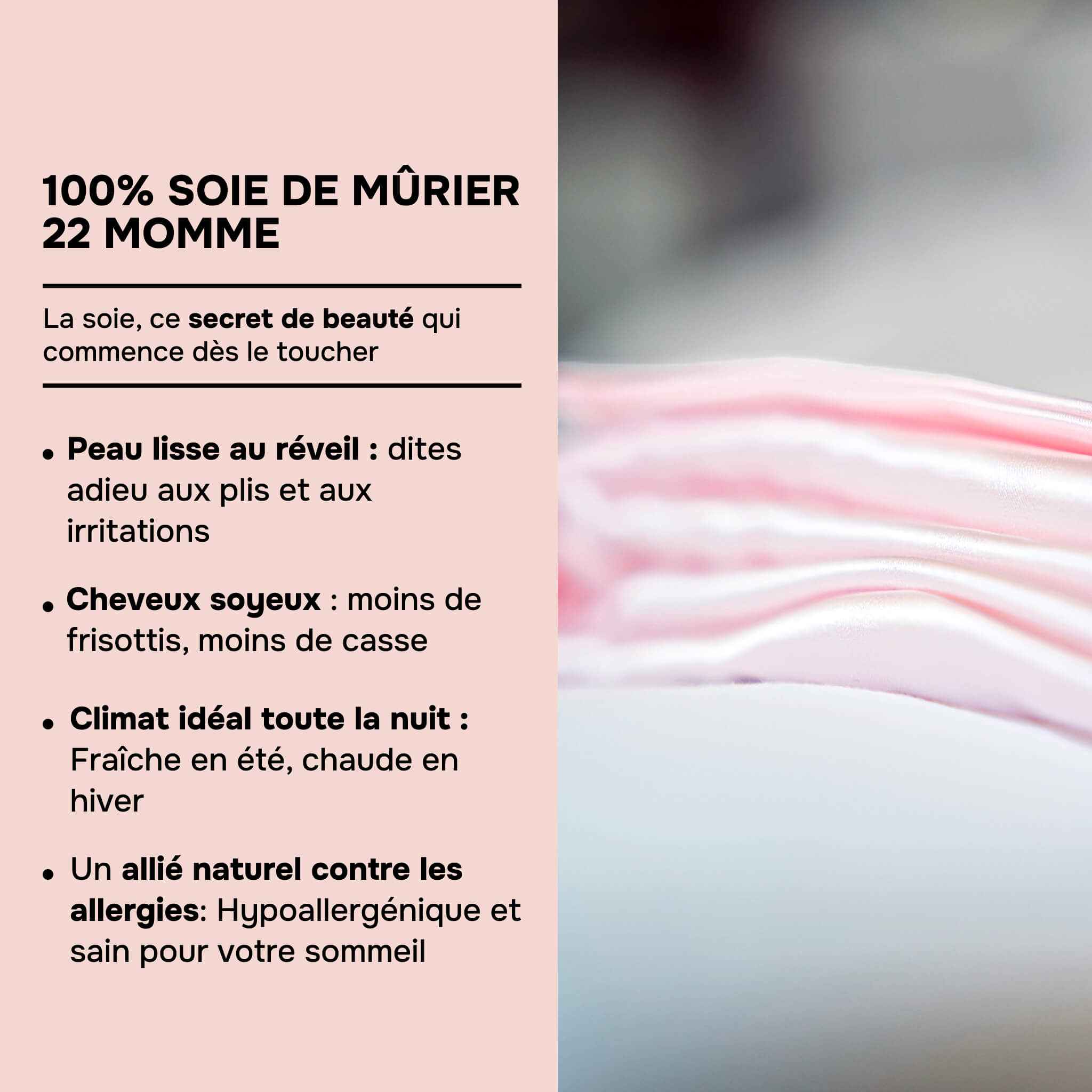 Federa in seta di gelso 22 mm rosa – 100% naturale – Antirughe, preserva l’idratazione e limita la rottura dei capelli – Lusso & comfort notturno