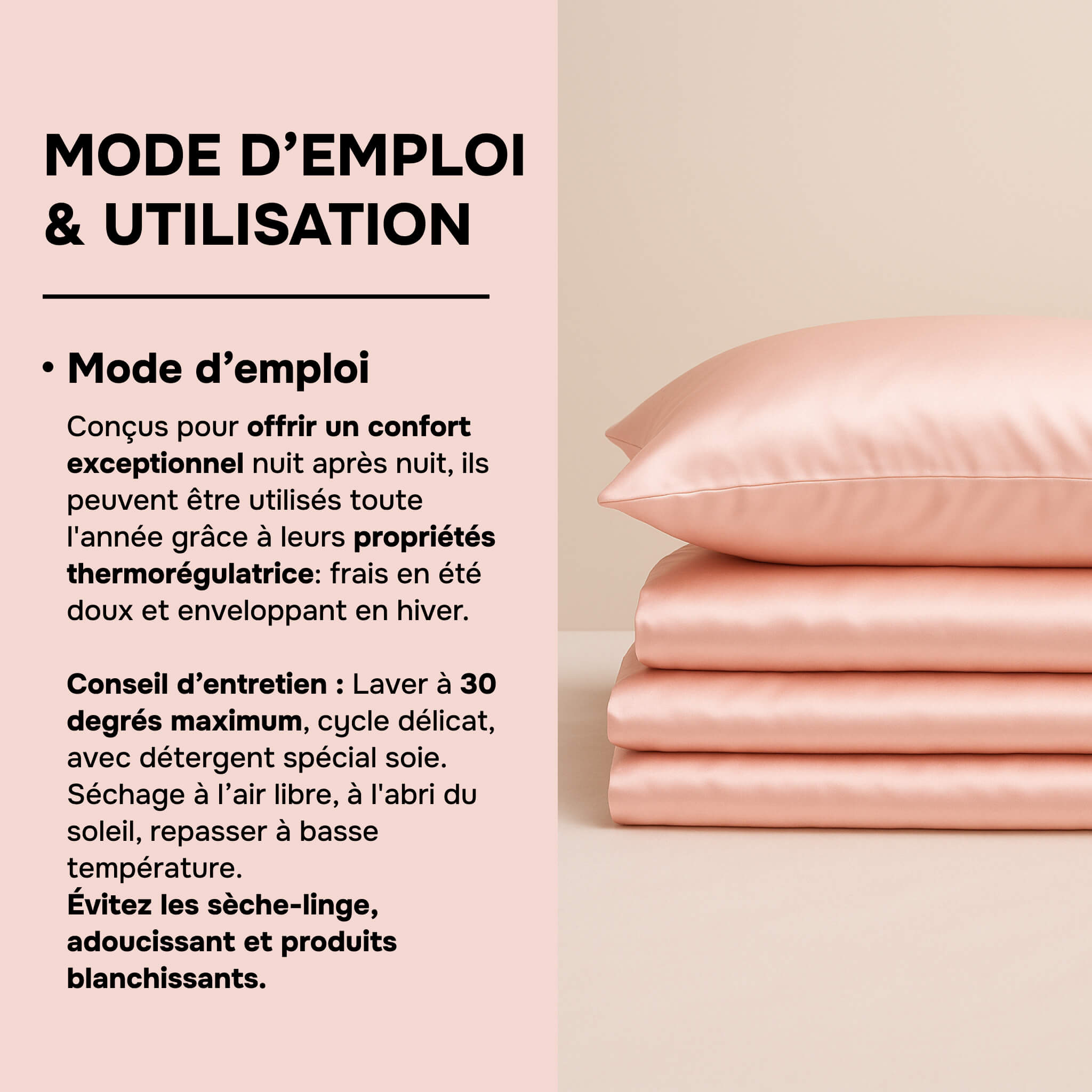 Usa ogni notte il set di lenzuola in seta di gelso per sfruttarne al massimo i benefici su pelle e capelli. La sua texture morbida e naturalmente termoregolante garantisce un comfort ottimale tutto l’anno, mantenendo la freschezza d’estate e un piacevole calore d’inverno
