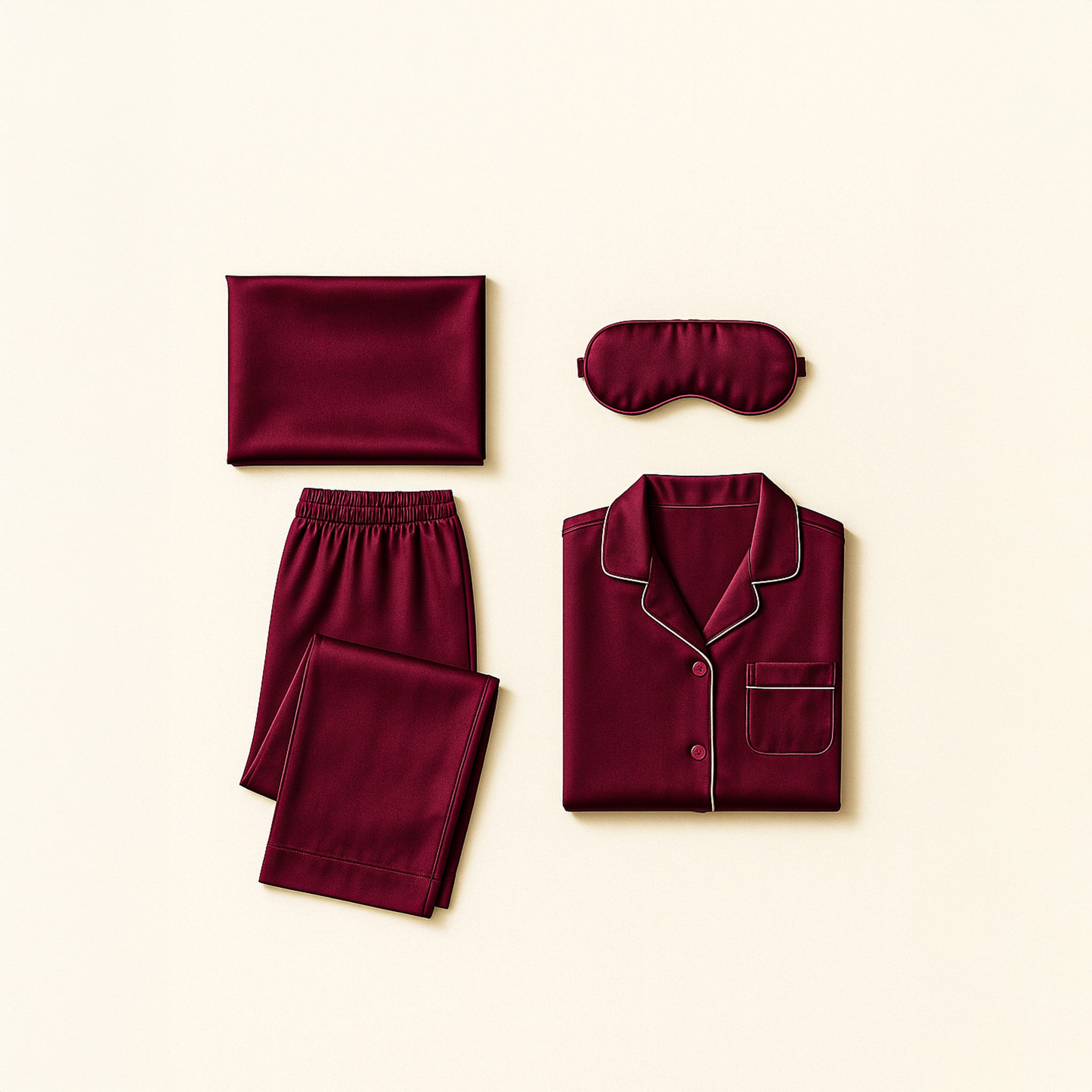 PACCO RITUALE IN SETA PRUNE - Pigiama, maschera da notte e federa in seta - Comfort, bellezza e sonno rigenerante
